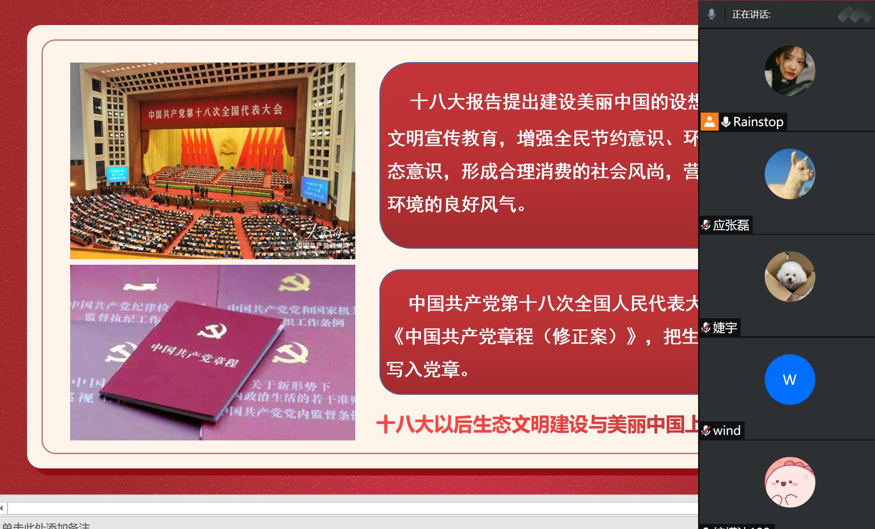 绿色学校创建工作对于推动形成国家社会经济发展新格局、助力美丽中国建设具有重大意义。为坚决贯彻落实党的十九大精神,践行绿色发展理念和绿色生活方式,呼应国家对于简约适度、绿色低碳的生活方式的倡导,反对奢侈浪费和不合理消费,使节约能源、低碳生活的观念深入人心,德赢官网组织各班级通过线上+线下的方式,陆续召开了《践行绿色发展理念 共建美好绿色校园》主题班会。