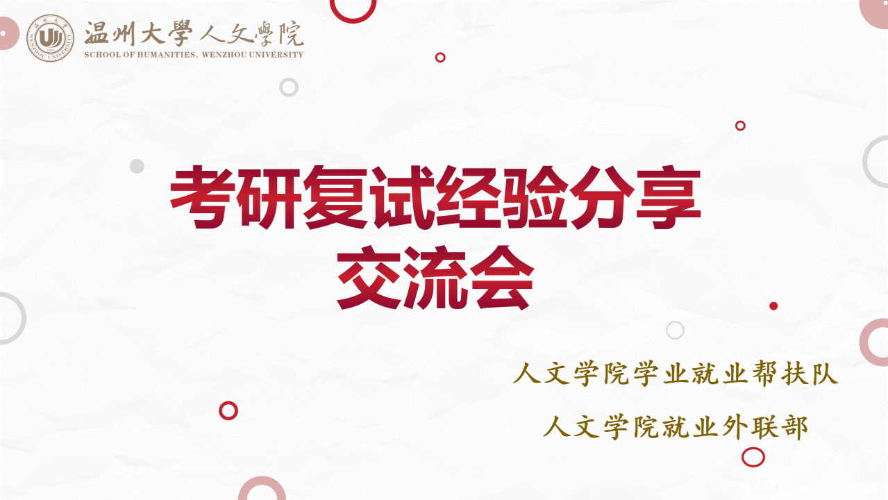 为了进一步帮助德赢官网考研学子掌握复试技巧,提升考研录取率,2023年3月19日晚,德赢官网考研复试经验分享交流会在腾讯会议如期举行。本次活动有幸邀请到了21民俗学李蓓学姐、21学科教学语文陈蒙蒙学姐、21中国史肖心蕊学姐以及21文化创意康楠学姐分享有关一志愿复试、调剂经验等方面的经验。
