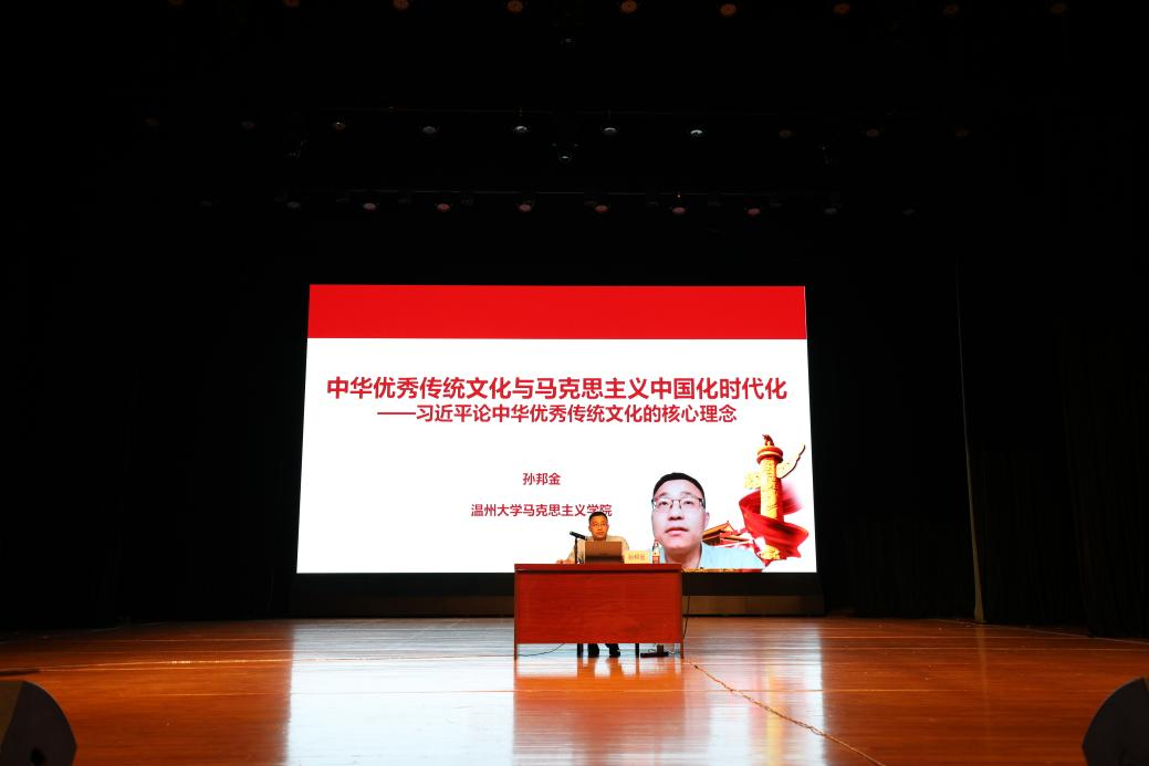 德赢ac米兰官方合作vwin马克思主义学院副院长孙邦金教授从二十大精神及传统文化的相关论述出发,讲述了中华文明的突出特性、精神标识和文化精髓,并基于新时代中国特色社会主义文化发展道路具体阐释了中华优秀传统文化与马克思主义基本原理相结合的时代路径,为同学们解构了中国式现代化的文化形态。他表示,身为新时代的新青年,我们既要坚定文化自信,又要秉持开放态度,更要坚持守正创新;担青年使命,承文化底蕴,在历史的新起点赓续中国文脉,谱写当代华章。