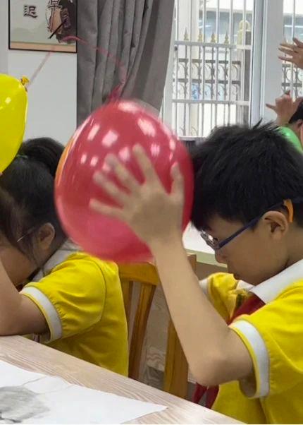 “嚓嚓”声传来,小朋友们用红线绑住的两只气球在头发上摩擦,松开手的瞬间,两球排斥,小朋友们争先恐后地发出疑问,灵动的大眼睛中闪烁着探索知识的光芒。在主讲员引导和自主探究下,学生们动手用苏打水和柠檬尝试制作汽水,每一位同学都积极参与其中,带着强烈的求知欲望进行实验探究。