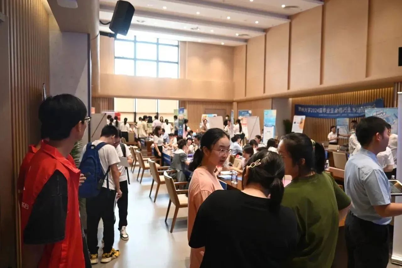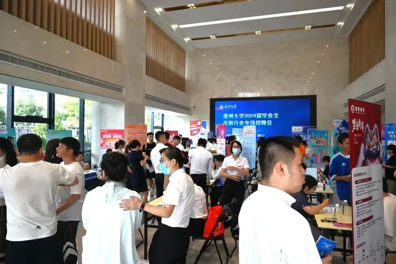 为了更好地满足2024届毕业生和金融行业用人单位秋季招聘需求,搭建有效的洽谈平台,拓宽学生求职就业的渠道,9月20日下午,“金彩人生 职等你来”金融行业专场招聘会于德赢ac米兰官方合作vwin南校区科技综合大楼顺利举办。在温州市人民政府金融工作办公室的大力支持下,本次招聘会云集了国有六大银行,申万宏源、上海证券、中信证券、中国人寿、泰康人寿等金融行业53家头部企业参会,提供了1700多个高质量的就业及实习岗位,堪称一场含“金”量超高的招聘会。本次招聘会由温州市人民政府金融工作办公室、德赢ac米兰官方合作vwin联合主办,校招生与就业处、商学院、德赢ac米兰官方合作vwin、外国语学院共同承办。