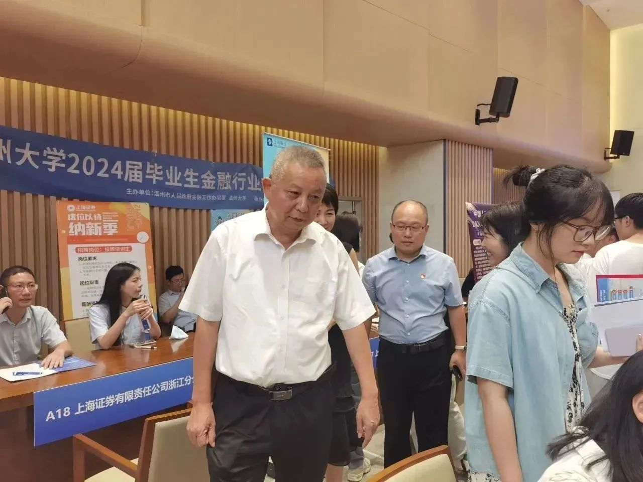温州市金融办合作服务处副处长陈天同、德赢ac米兰官方合作vwin招生与就业处处长蔡锋、德赢ac米兰官方合作vwin商学院院长胡振华、党委书记李密等相关单位负责人及各学院就业辅导员来到现场,细致了解各招聘单位的岗位设置、招聘人数、薪酬待遇等情况,与参会的毕业生同学们亲切交流,询问同学们的求职情况及求职意愿,并给予悉心指导和耐心解答。