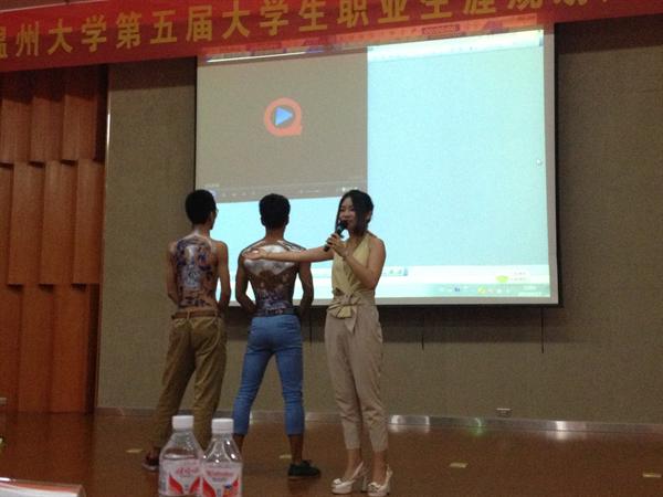 大学生职业生涯规划大赛由德赢ac米兰官方合作vwin就业处主办,面向在校学生,以"普及规划知识,提升职业能力"为宗旨,分为职业规划与创业规划两个模块的比赛,评出"十佳职业规划之星"荣誉称号。 此次大赛从上个学期末启动以来,经过初选、复赛,最后14位优秀的选手进入总决赛。总决赛分为PPT规划作品展示、职业角色模拟和现场答辩等三个环节。德赢官网的丁明月同学以作品《fly》,做一名人体彩绘师,参加职业规划类比赛。在观众热烈的掌声中,她以对职业探索、自我探索的深刻分析,对成长之路的准确规划,对大赛主题的完美陈述,对评委提问的灵活应变,大方得体的仪表,流畅精炼的谈吐等优点赢得了评委和在场观众的好评,最终以总评并列第二名,职业类第一名的成绩获得了"十佳职业规划之星"的荣誉。