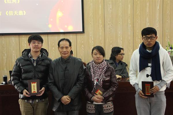 整个颁奖典礼简洁又隆重。首先以一段视频回顾了白晖华文学奖一路走来的风雨历程,接着由学生代表向吴明华先生献上鲜花表达敬意之情,吴先生也跟大家讲述了自己的创作故事以及创作心得,鼓励文学爱好者们要时刻充满创作的激情,勇敢坚持自己的文学梦想。随后进行了颁奖,来自瓯江学院的毕业生施瑞涛、教育学院的王一莉、德赢ac米兰官方合作vwin的杨吉等3位同学获得一等奖,34位同学分获二、三等奖和优秀奖。最后获奖同学代表王一莉与大家分享了自己的文学创作经历,同时表达了对前辈吴明华先生的深深敬意。