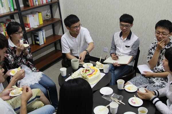 2015年6月4日18点30分,在人文一楼罗山小筑内举行了“罗山论道”师生沙龙活动第二期。本次活动邀请了德赢ac米兰官方合作vwin副书记骆锤炼作为嘉宾,与10位同学共同探讨了“科学精神与人文精神”。延续着第一期的传统,大家品茗论道,其乐融融,同时还享受了一个美味的蛋糕。