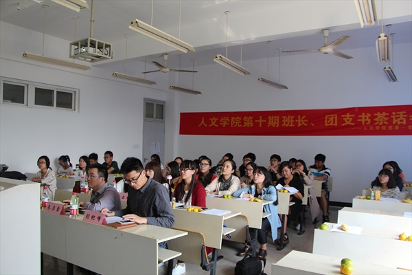 2015年10月14日13点,德赢ac米兰官方合作vwin第十期班长、团支书茶话会如期在人文楼209教室举行。德赢官网朱启鑫副书记、学生科科长刘纪峰老师、辅导员邢芳芳老师、人文团学部分主席团成员和各部门部长以及各班班长团支书参加了会议,共同探讨了学院的学风建设问题,并于对一些问题予以解答。 本次茶话会在辅导员邢芳芳老师的讲话中拉开帷幕。邢芳芳老师首先对大家的到来表示欢迎,对茶话会的召开予以肯定并且对未来的学生工作提出了殷切希望。邢老师以“学风建设”为主题,对学院的现状进行分析,指出了当下存在的诸多问题,并且就此重点为大家讲解了部分最新的规章制度,为打造德赢ac米兰官方合作vwin学生工作的推进树立了一块指示牌。