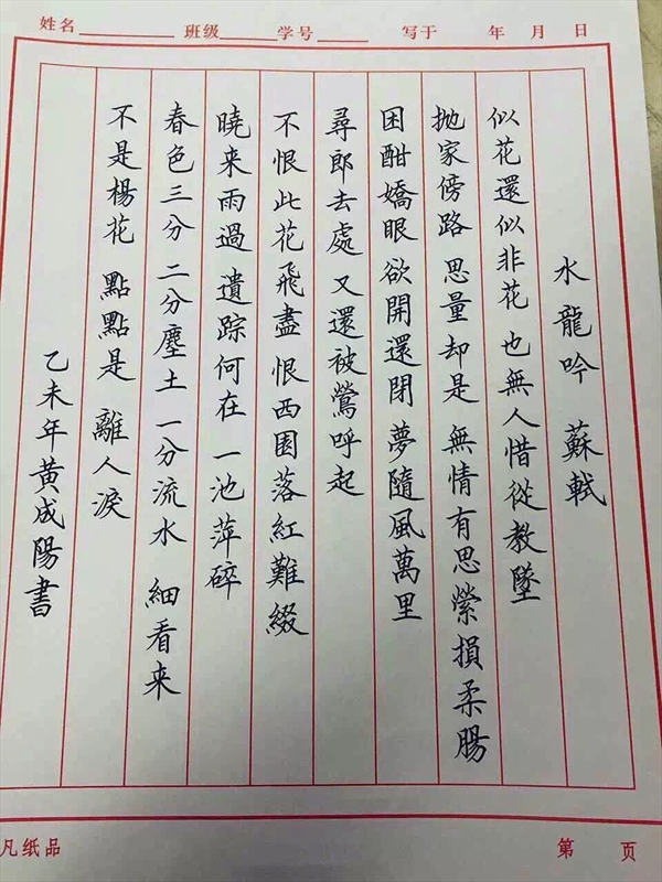本次比赛统一用纸,选手以苏轼的《水龙吟》为标准文本,同时也可自己创作,进行了现场书写展示。比赛过程中,选手们用心书写一笔一划,充分展现了汉字精巧优美的结构艺术。作品或厚朴劲健,或行云流水,或娟秀工整。教室里静得能听到由于紧张而沉重的呼吸声。他们专注的神情、整洁端正的字迹,彰显了人文学子热爱学习、科学严谨、积极向上的精神风貌。在选手们纷纷上交了自己认真完成的作品默默离场之后,本次大赛也随之进入了尾声,教室中墨香氤氲,久久不散。