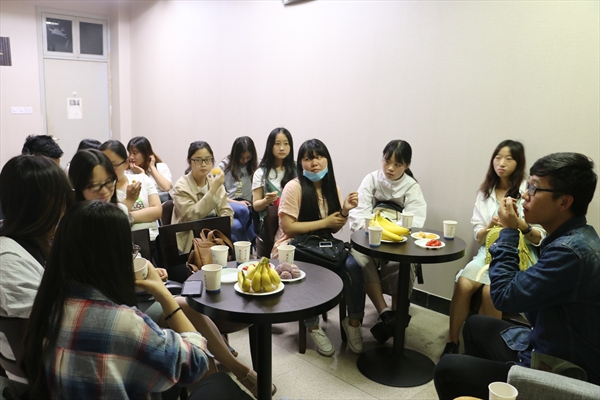 在本期活动中,姜老师围绕“设计与生活”这一中心,和大家一起交流“设计”对于我们生活产生的各方面影响。姜老师认为,设计的发展与时代的发展息息相关,设计的进步对社会的发展有很大推动作用,所以,我们大学生要注重设计中的创意部分,用设计改变生活、改变社会。姜老师还把我们国家的设计与国外的设计发展相对比,相对于日本、美国等国家而言,我们中国的设计水平确实与之有很大差距,所以,我们国家应该加大政府以及社会对于设计创意的支持,推动设计的发展,二者相辅相成,社会与生活也将随之越来越美好。最后姜老师认为,美术是一种精神,而设计是美术的外在表现,我们大学生需要去继承和发扬这种精神。在活动中,姜老师与大家一边享用水果、糕点一边交流,气氛十分融洽。活动最后,同学们和老师合影留念,为本次活动画上圆满句号。