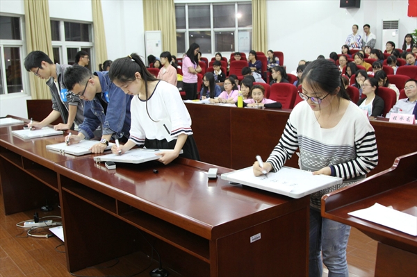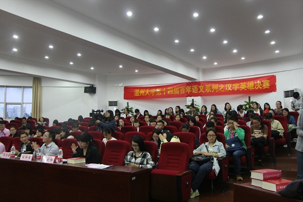 2016年5月18日18点30分,德赢ac米兰官方合作vwin第十四届百年语文系列活动之汉字英雄决赛在人文楼203报告厅隆重举行,李爱红、程水龙两位老师作为“汉字先生”应邀担任评委,德赢ac米兰官方合作vwin党总支副书记朱启鑫、辅导员邢芳芳作为嘉宾应邀出席本次比赛。经过初赛近四百人的比拼,最后决出了15位选手站在了决赛的舞台上。在一片热烈的掌声中,比赛拉开帷幕。