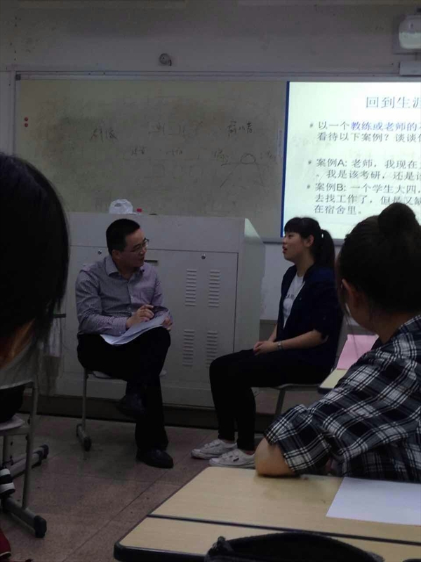 此次课堂一开场就是一段舒缓的音乐沉淀我们的心灵,接下来是一段现场的访谈,朱老师邀请一位学员在课上直接针对她的问题,用教练技术引导解决。在朱老师的引导下我们知道了最重要的一点就是我们自己才是自己的答案。教练只是引导你说出自己心里的答案而不是提供答案。