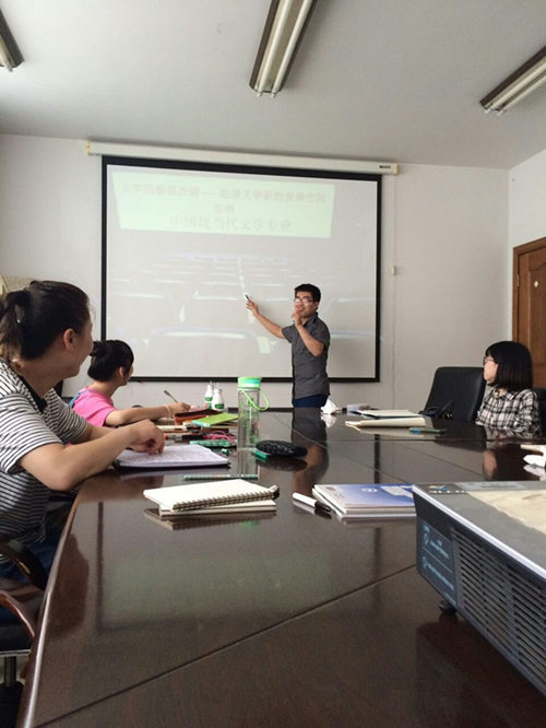 本次活动由现当代文学专业优秀学生代表张朔同学主讲。活动由张朔同学首先发言,他根据自己的知识积累,精心制作了课件。他的发言一开始列举了多个现当代文学作品改变电影的范例,不仅提到了成功的改编,也涉及到不成功的改编。随后它讲述了当代文学改编影视作品的现状,并在此基础上,以《活着》为例,分析了余华小说与张艺谋同名电影之间的一同。整个发言过程,张同学一直用通俗易懂的语言进行讲解,旁征博引,妙趣横生,不时博得在场同学阵阵掌声。
