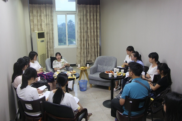 2016年6月15日18点30分,在人文二楼罗山小筑内举行了“罗山论道”师生沙龙活动。本次活动邀请了德赢ac米兰官方合作vwin陈伟娜老师作为嘉宾,与12位同学共同探讨了“《周易》乾卦与人生”。延续着前几期的传统,大家品茗论道,其乐融融,同时还享受了许多新鲜的水果、各色甜点。