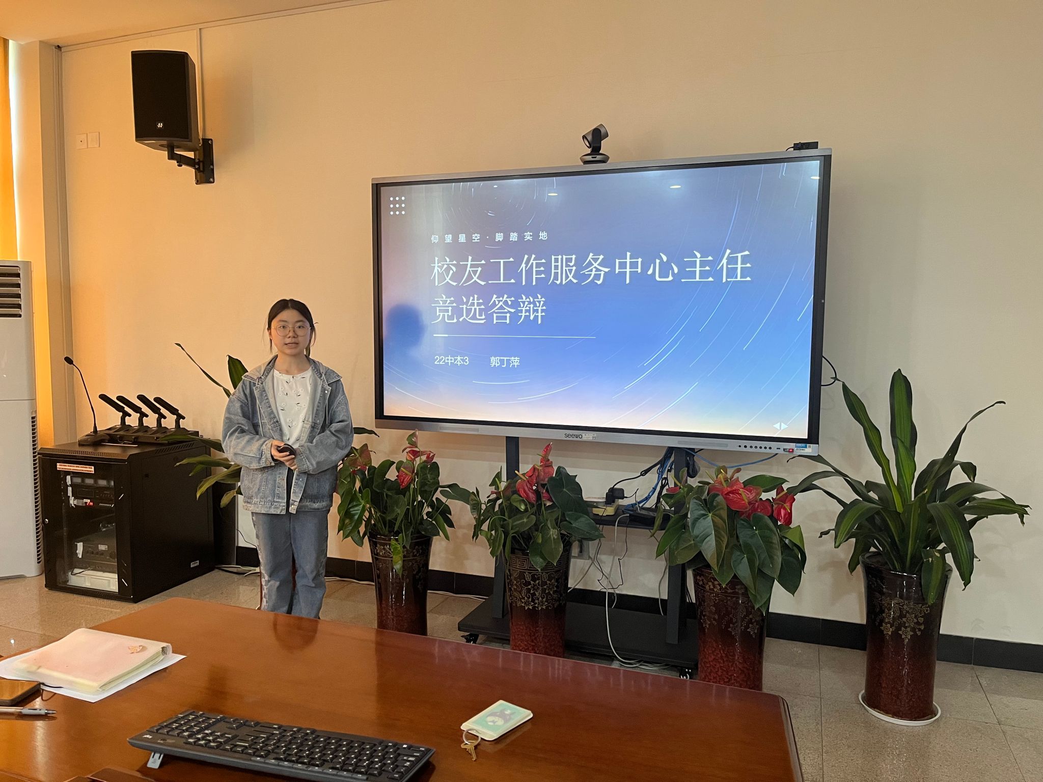 在换届竞选过程中,各部门竞选者通过PPT演讲的方式展示自己的学生工作经验和竞选优势,也对未来的工作进行了展望。学院校友工作服务中心现任主任及部长就部门情况、组织建设等方面向竞选者提问,竞选者的应答展示出较强的应变能力及对部门建设的各类思考。