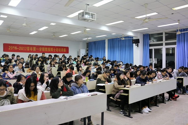 2016年12月12日18:30,德赢官网于人文楼202教室开展了教授博士论坛讲座。本次邀请了罗筱玉教授,为同学们讲述中唐文化的雅俗衍变。德赢官网学生积极参与,全场座无虚席。