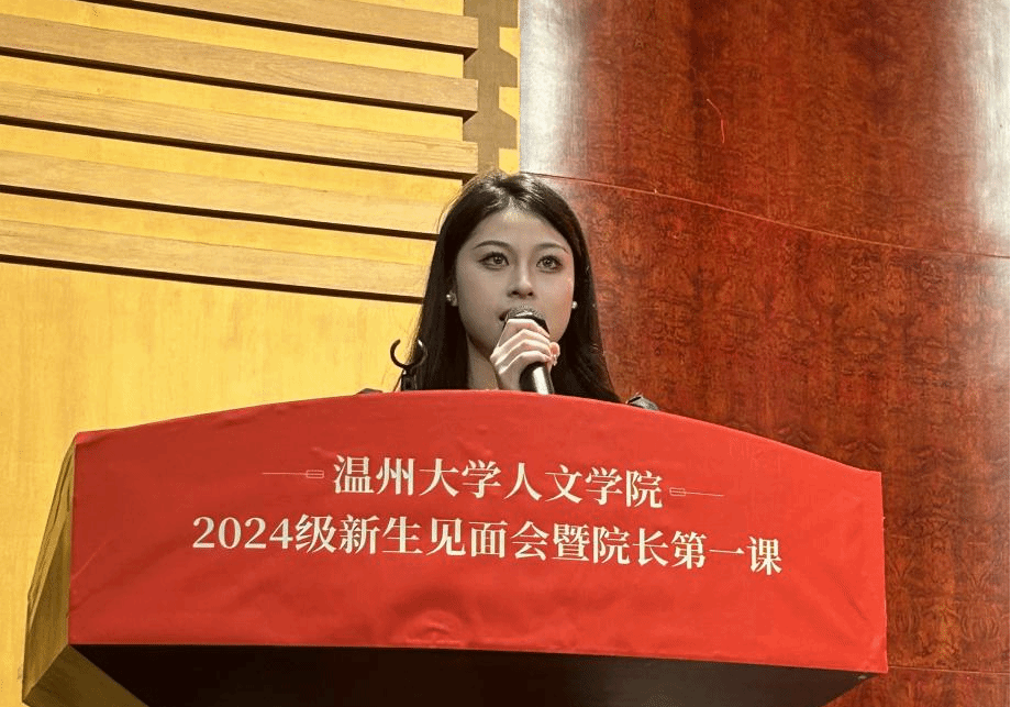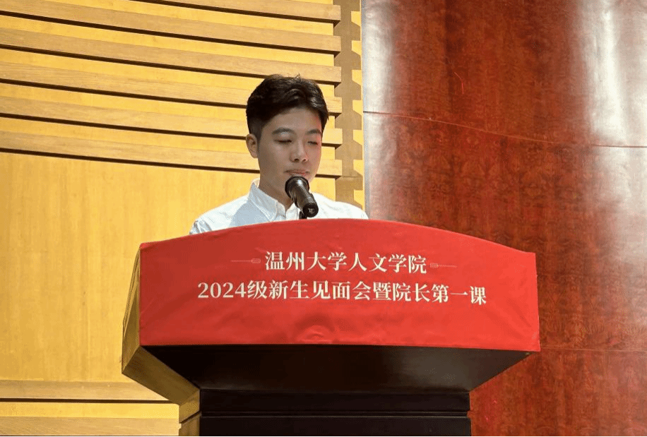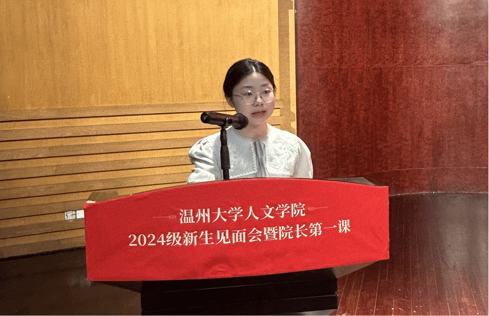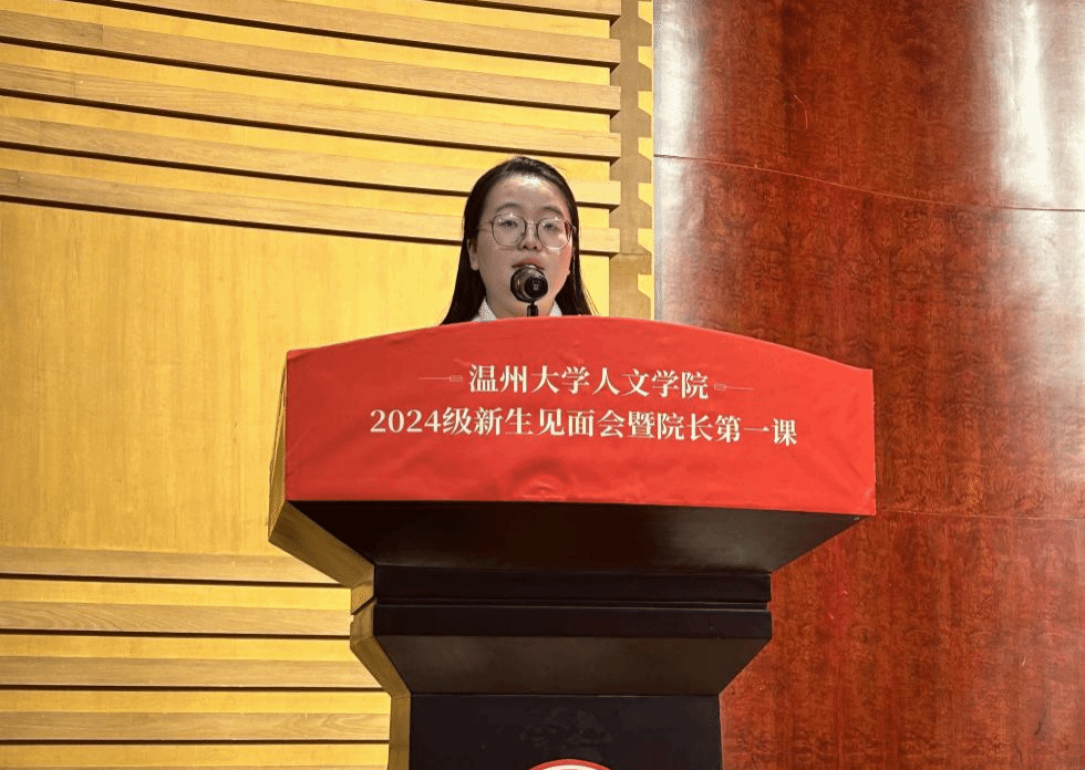 23古典文献学周星豆、22中本3班郭丁萍作为优秀学长学姐代表先后发言。周星豆同学告诉新生们前路漫漫亦灿灿,在面临新的起点时,大家心中可能会有忐忑与不安,也会有憧憬与期待,但无论如何都请相信这将是人生旅途中无法复刻的风景,过去、现在与未来的种种经历都将塑造出一个独一无二的自己。郭丁萍同学则是通过“目标”“学习”“心态”三个关键词来勉励新生们珍惜大学生活的每一天,珍惜与老师、同学相处的每一刻,收获知识,收获友谊,收获成长,扬帆远航,乘风破浪,最终抵达梦想的彼岸。