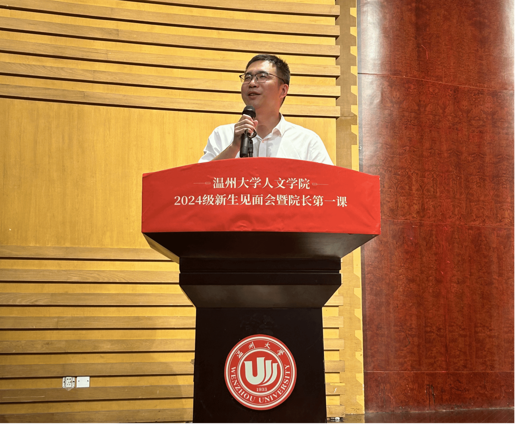 见面会伊始,院党委书记、副院长江秀景致辞。江秀景书记先是向来自五湖四海的温大本研新生们表示了最热烈的欢迎,随后他引用了习近平总书记2018年在全国教育大会上发表的一句话“我们的教育绝不能培养社会主义破坏者掘墓人,绝不能培养出一些‘长着中国脸,不是中国心,没有中国情,缺少中国味’的人!”来勉励24级新生们要思考如何开启自己的大学生活。接着,他又借这句话提出了自己对于24级新生的三个希望:永葆一颗中国心;谱写一段温大情;尝校园生活酸味,勿触碰规则辣味。最后,他送上了自己最真挚的祝福,希望所有2024级新生们都能够生活愉快、学业有成。