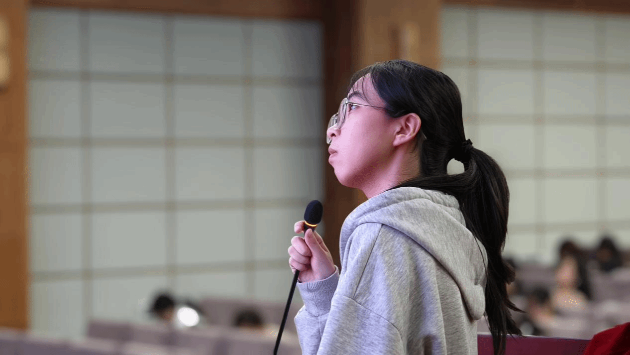 第三轮比赛开始,陈嘉乐、周佳靖、石彩琳三位同学成功晋级。本轮为抢答制,选手们反应迅速、积极抢答,观众们也为选手们的精彩表现加油助威,现场气氛达到了顶点。