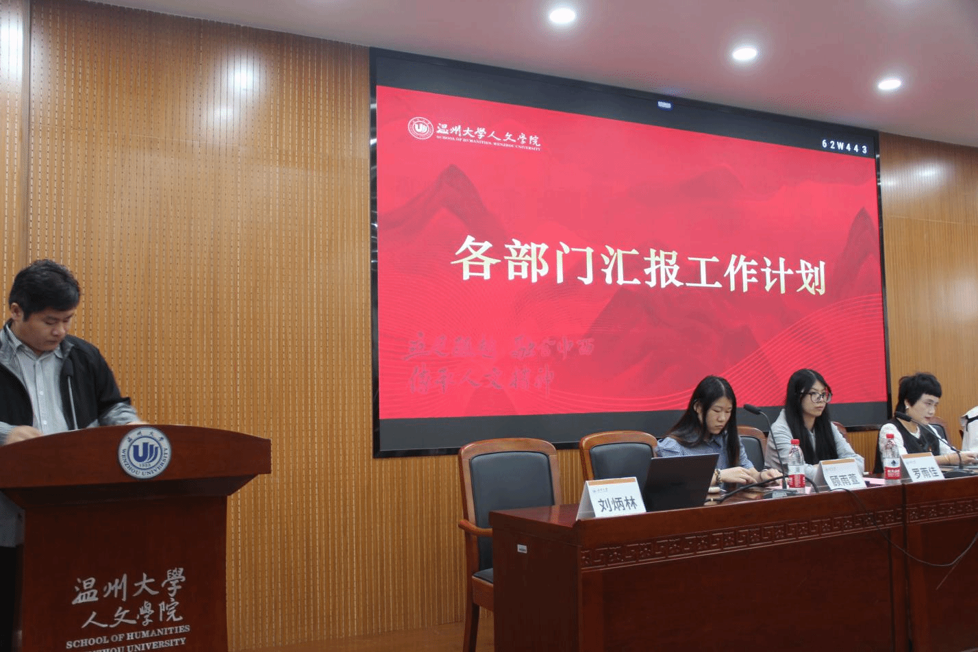 紧接着,团学各部门部长总结本部门工作,汇报本学年工作计划并进行了各部门新干事的介绍。