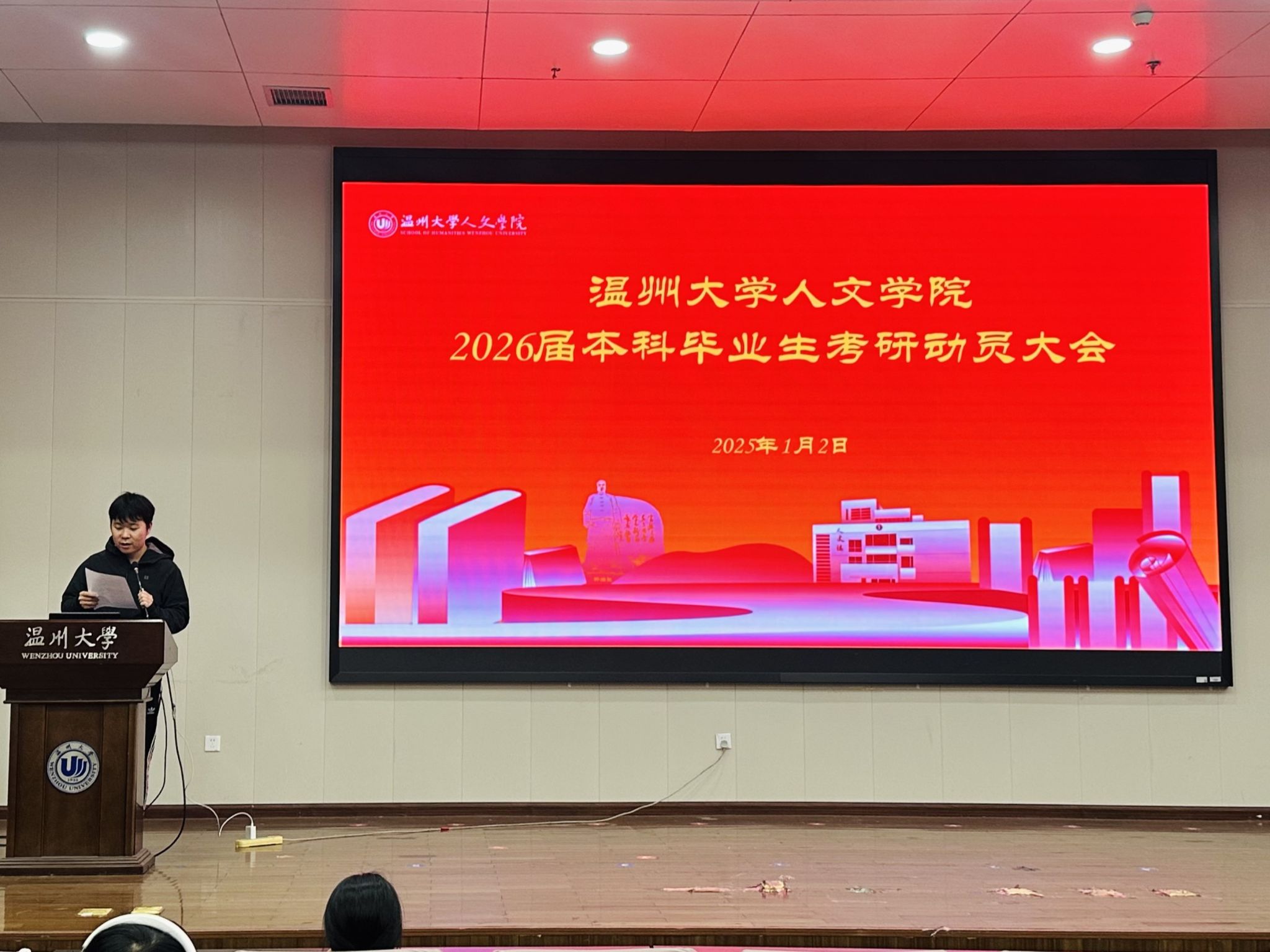 为激发同学们的考研热情,明确考研目标,提供实用的备考指导,助力同学们在考研道路上稳步前行,德赢ac米兰官方合作vwin于1月2日晚在北校区信息楼报告厅举办了2026届本科生考研动员大会,吹响了2026届毕业生考研的冲锋号。