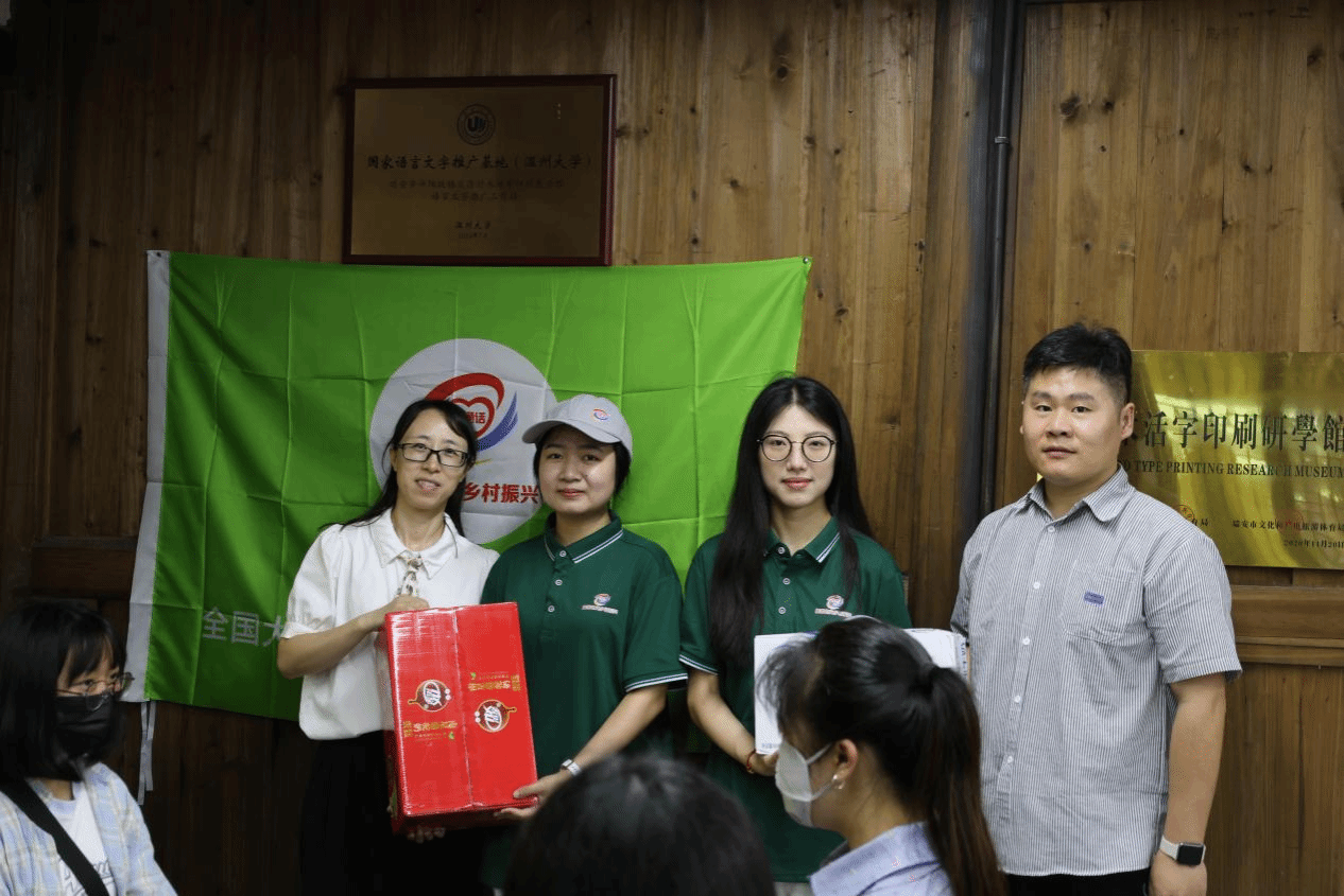 在德赢ac米兰官方合作vwin副院长陈源源教授的带领下,夏雨禾教授、学生科刘炳林科长、李惠超博士等一行人来到瑞安平阳坑镇东源村东源木活字展示馆,为实践队队员们送上慰问品。这份关怀让实践队队员们倍感温暖,深受鼓舞,进一步激发了大家投身实践的热情。