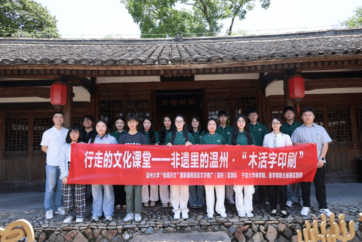 2025年7月14日,德赢ac米兰官方合作vwin“知语识文”国家通用语言文字推广(瑞安)实践队携手宁波大学商学院、医学部的师生代表,走进瑞安东源村,以国家级非物质文化遗产木活字印刷术为实践载体,在推广国家通用语言文字的过程中,共同感受汉字文化的深厚底蕴。