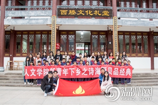 2017年11月22日,我校德赢ac米兰官方合作vwin思源青年志愿者协会来到乐清市芙蓉镇西塍村文化礼堂,携手芙蓉镇政府和雁湖九年一贯制学校共同举办了德赢ac米兰官方合作vwin新青年下乡之“诗海撷贝品经典”活动。