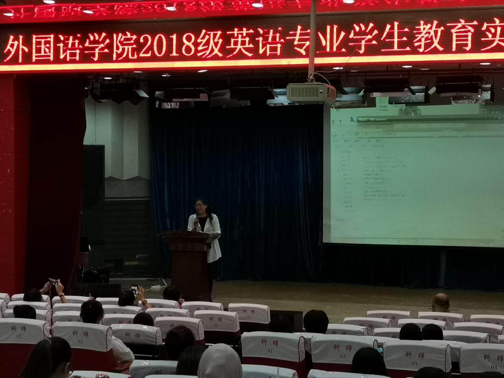 大会第一项通过视频播放的形式,让全体师生共同回顾了英语18级学生实习过程中让人难忘的美好瞬间,引发了同学们对实习期间点点滴滴的回忆,有欢笑、有泪水、有难过、有兴奋……。