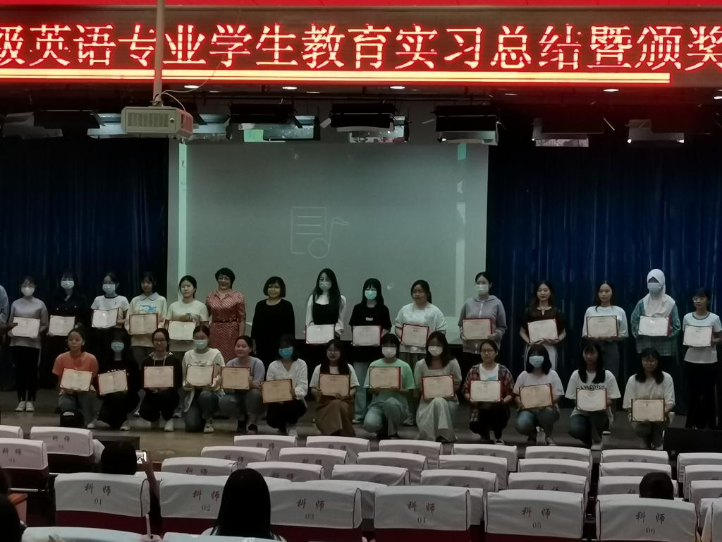 best365手机版官方网站英语2018级学生教育实习总结暨颁奖大会于2021年9月16日在best365手机版官方网站开发区校区报告厅顺利举行,参加大会的学生包括英语2018级全体学生共122人,2021级新生代表共40人,同时,best365手机版官方网站邵丽君书记、崔海英院长、罗学锋副院长和范学荣副院长,以及部分实习指导教师出席了大会。