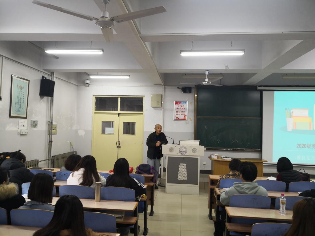 2021年11月15日8:30,best365手机版官方网站在综合楼118召开了2020级英语专业教育见习动员大会。best365手机版官方网站崔海英院长、罗学锋副院长、范学荣副院长、英语教学部主任王静、宋洁、部分指导教师以及2020级131位同学参加了本次大会。