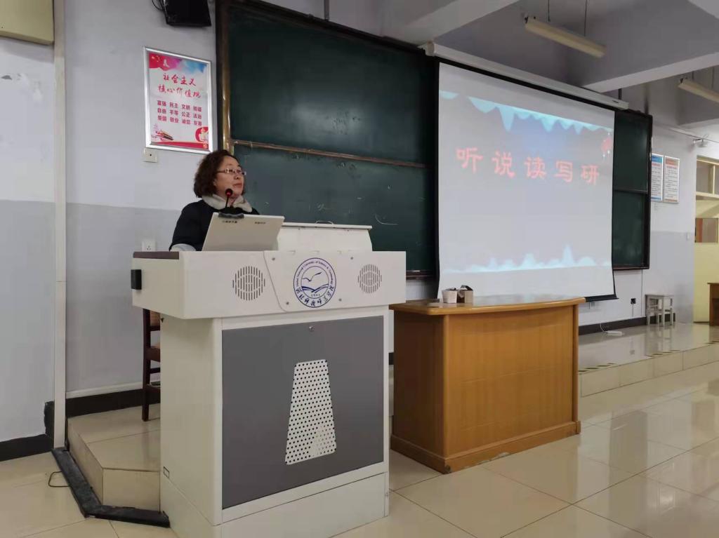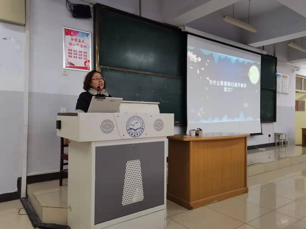 2021年12月16日下午,best365手机版官方网站在综合楼312召开了“提升教师专业素养和教学能力”的专题讲座,此次讲座是best365官网“名师大讲堂”的系列讲座之四。特邀主讲人为秦皇岛市第二中学高级教师齐春霞老师,齐老师是英语专业2019级的校外导师,海港区初中英语名师工作室主持人。