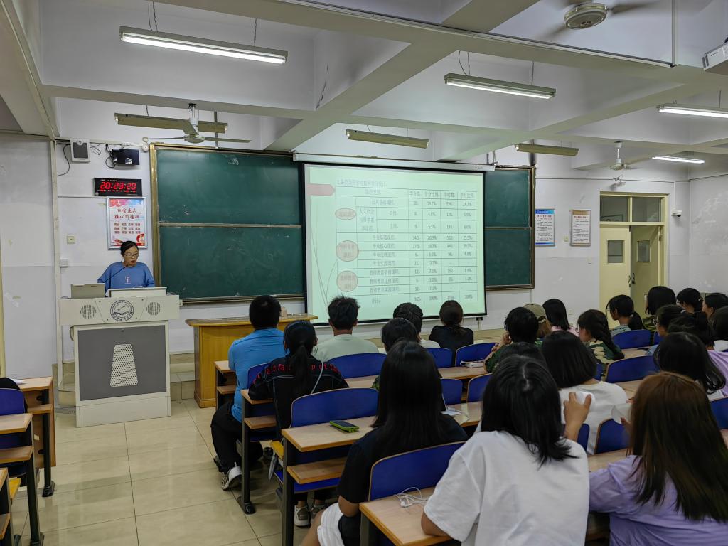 英语专业带头人范学荣、教学部主任王静、宋洁先后就学院情况、英语学科专业背景、培养目标、best365官网师范生培养特色、课程设置和考核、师范生成长手册等方面为学生进行了详细的解读。
