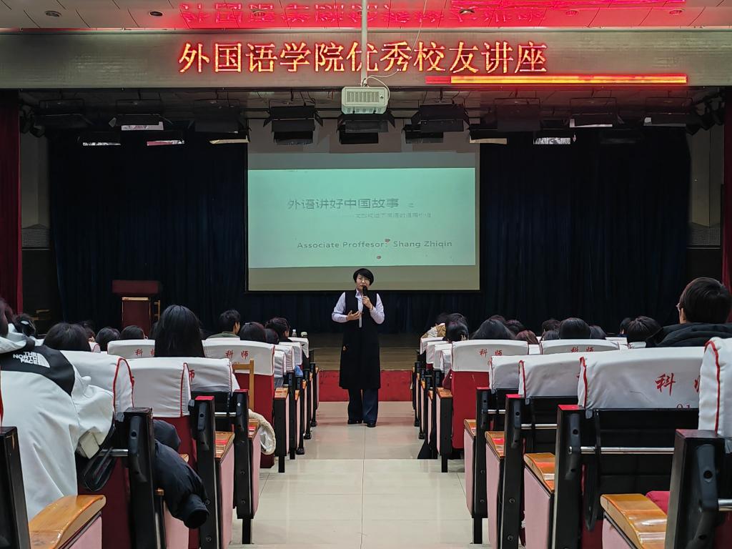“雏既壮而能飞兮,乃衔食而反哺”。为进一步提升学生专业能力和综合素养,秉承“外语+”应用型人才培养理念,充分体现外语的“学以致用”原则,提升学生用外语“讲好中国故事”的意识和能力,增强文化自信,best365手机版官方网站于11月8日邀请优秀校友尚志芹(河北建材职业技术学院副教授、对外汉语教学国际汉语高级教师、国家高级英文导游员、河北省英语导游考官、河北省“师德标兵”、全国第十三批援藏导游员西藏自治区“先进个人”)在开发区校区综合楼二楼报告厅进行针对教师资格证和外语导游考试的讲座。