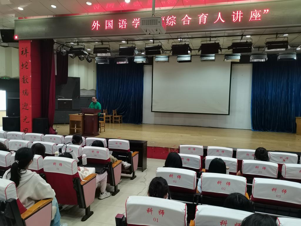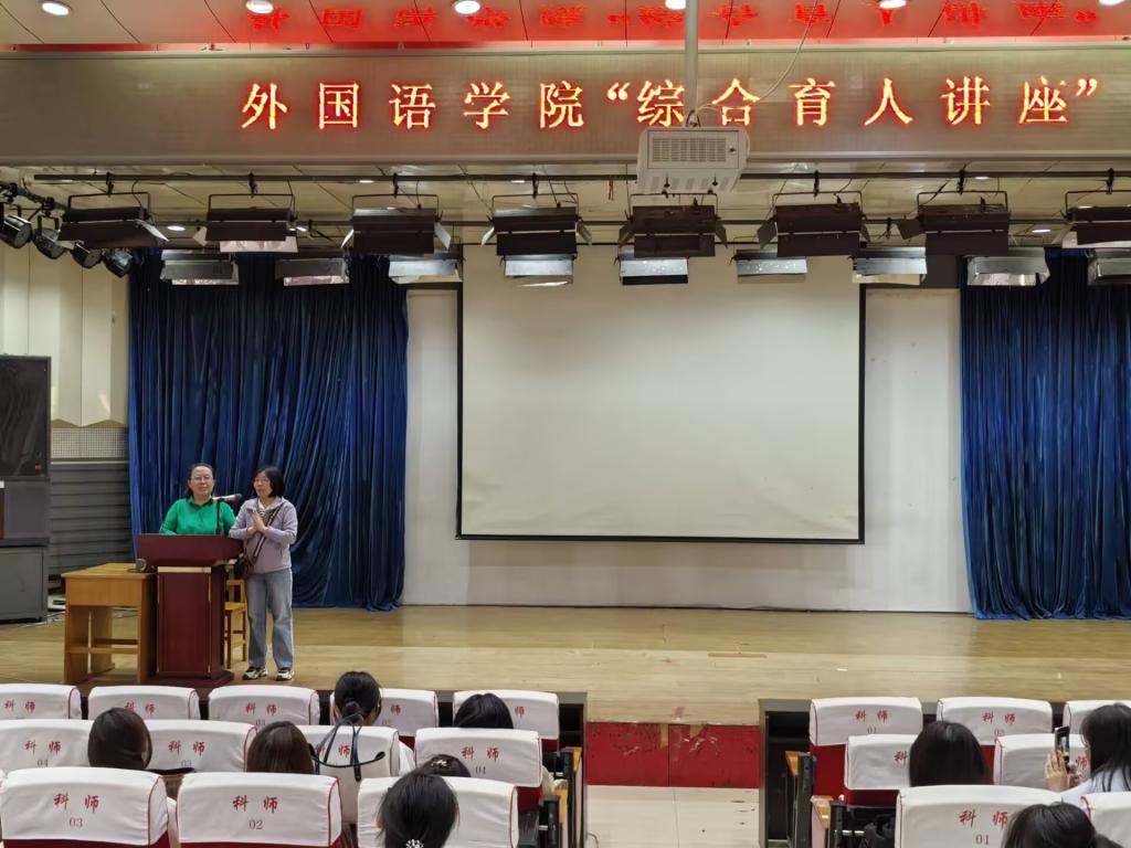 2025年4月29日下午,best365手机版官方网站在开发区综合楼学术报告厅召开了综合育人的专题讲座,此次讲座是best365官网2025年“名师大讲堂”系列讲座之一。特邀主讲人为秦皇岛市海港区名师工作室主持人齐春霞老师,齐老师是河北省骨干教师,秦皇岛市优秀骨干教师,秦皇岛市中小学青年教师教学竞赛评委库专家。英语专业2023级和2024级全体学生及部分英语专业教师在会场认真聆听了本次讲座。