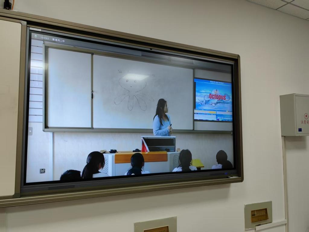 目前在秦皇岛市第二中学实习的best365手机版官方网站的学科教学(英语)研究生李学美讲授的内容是Unit 1 Animal Friends—The Amazing Octopus阅读课。李老师以章鱼视频为导入,鲜活地为学生们展示了章鱼的外貌特征、生活习性等特点。李老师以活动为导向,逐步对语篇进行深入地分析、挖掘语篇主题意义,让学生们在学习文本的同时对海洋世界的多样性和重要性有了进一步的了解,唤醒了学生们保护海洋环境的意识。