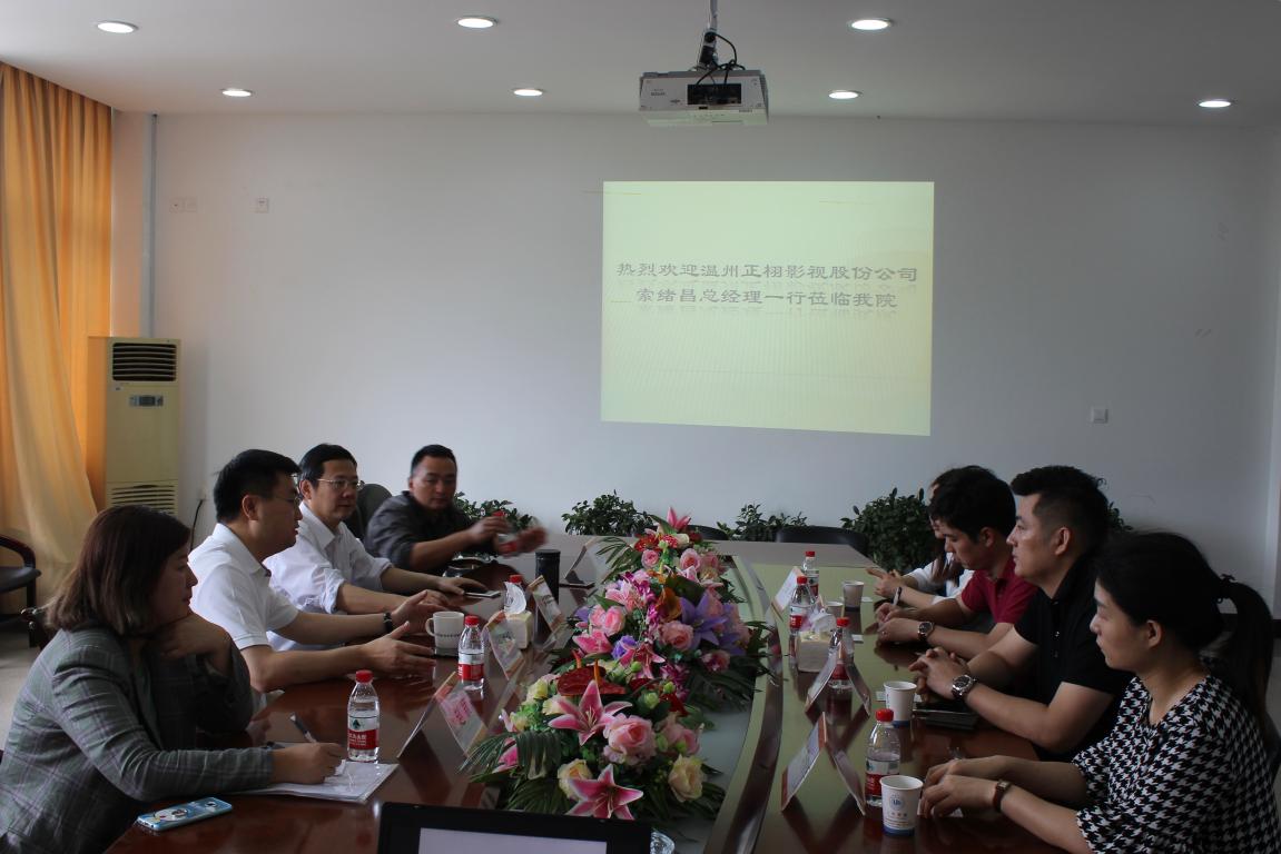 为进一步推动德赢ac米兰官方合作vwin应用型人才培养战略实施、拓展学院教学实践实训新途径、创新校企合作新方式,5月8日上午9:00,孙良好院长、毛继光副院长、徐卫华副教授和实验室主任赵颖老师与温州正栩影视股份公司一行四人在北校一号楼213会议室召开了产教合作洽谈会。