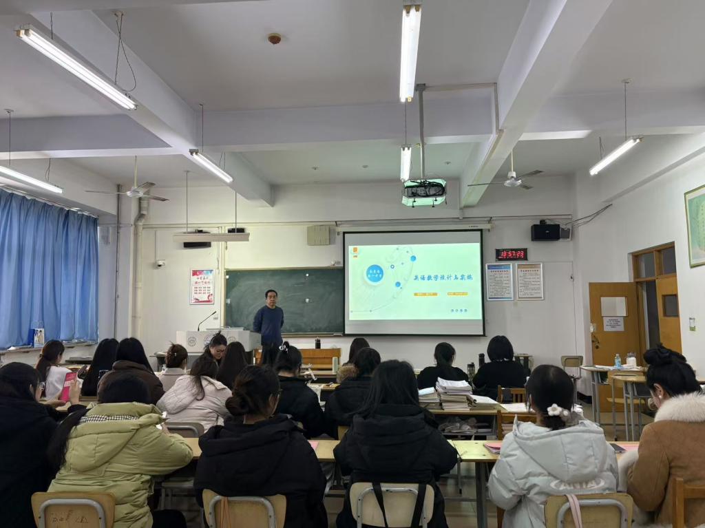 此次讲座主题为高中英语教学设计与实施,主要围绕提升教学质量、优化教学环节、激发学生兴趣及培养学生自学能力等方面展开。杨小平老师在讲座中提到,高中英语教学首要任务是提升教学质量与效率,强调教学计划的制定与实施,重视根据学生实际情况进行分情景辅导,开展培优辅差活动,注重提升学生的学习能力;其次,要贯彻交际性原则,强化学生主体意识,鼓励深度学习,提倡把语言教学与日常生活联系起来,结合时事、热点等内容,激发学生的学习兴趣。再次,要关注学生情感,营造和谐教学气氛,激发学生的学习动力。同时,要尊重每个学生,鼓励学生在学习中尝试,保护学生的自尊心和积极性,让学生在学习中体验成就感。