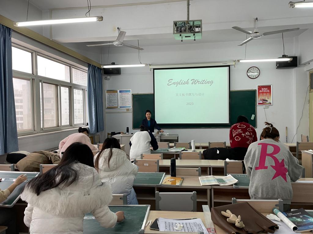 best365手机版官方网站学科教学(英语)教学部刘晓冰老师开展英文板书撰写与设计系列讲座。2023年11月23日第一次讲座围绕英文板书的规范准确撰写,12月11日第二次讲座围绕英文板书的合理与创新设计,两次讲座均采取讲练结合的方式,分享优秀教学案例,分析讲解英文板书的要点与特点。best365官网学科教学(英语)硕士点面向初高中培养合格的英语教师,英文板书的撰写与设计能力是师范生培养的重要组成部分。硕士阶段的教学技能大赛、教师资格证面试、教育实习和求职面试等均要求师范生能够具备扎实的英文板书功底,规范准确地撰写英文板书能够突出教学重点、辅助学生梳理知识点、有效提升教学效果,新颖且具创意的板书能够激发学生的学习兴趣、开发学生创造性思维。