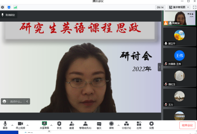 best365手机版官方网站学科教学(英语)教学部组织了硕士研究生公共英语(第一外国语)课程思政教研活动。期末考试临近,本次教研围绕如何通过期末考核强化课程思政,研讨内容包括:对于教材的课程思政可实施路径的深度挖掘,期末试卷中写作题目和翻译的课程思政角度探讨,课外阅读题的选择,教材课后题词汇范围的思政考量等等。