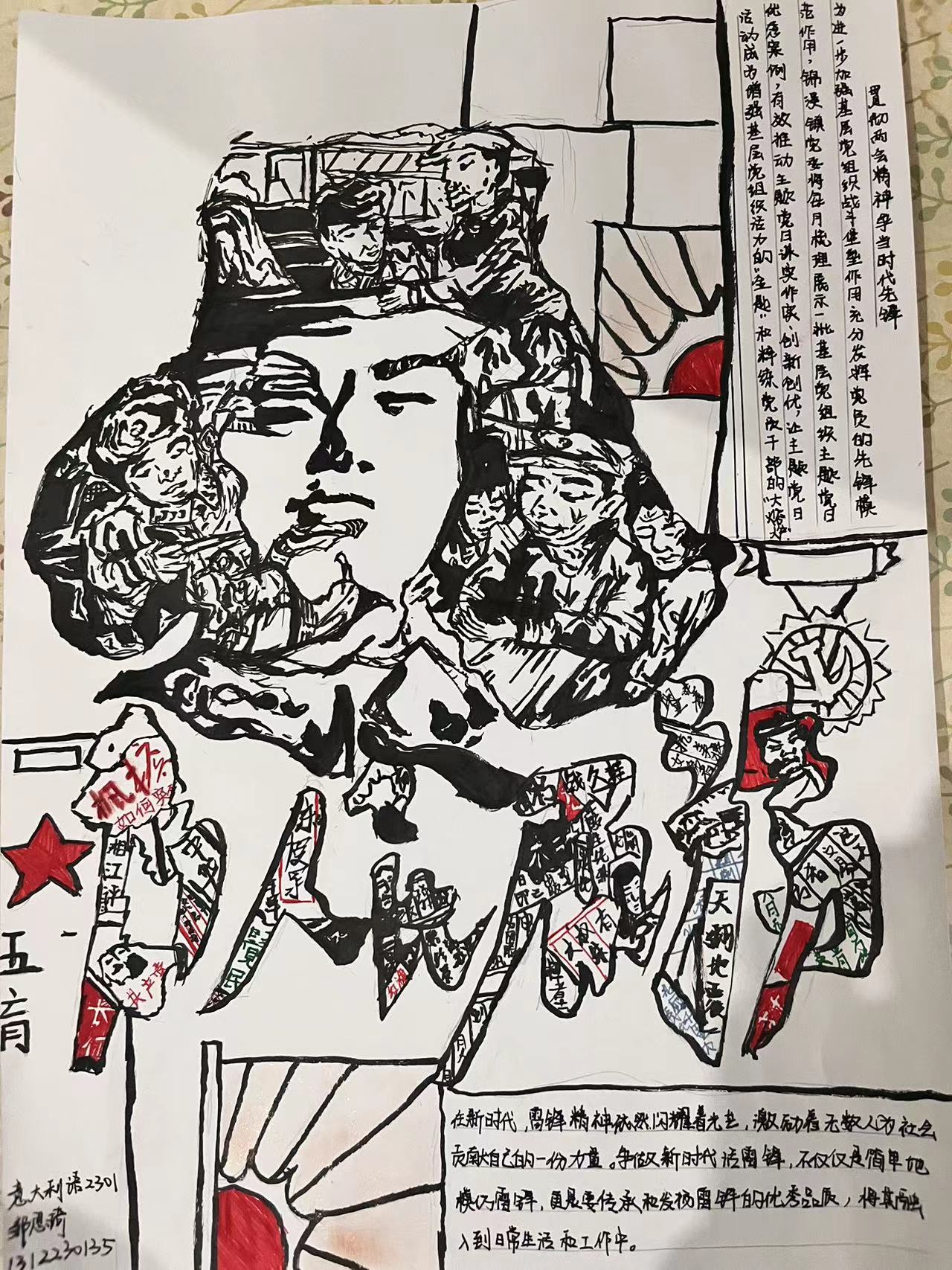 本次手抄报比赛以个人参赛的形式开展,总计120余名同学报名参加。比赛过程中,同学们充分展现时代内涵,紧紧围绕新时代雷锋精神,凭借画笔妙染成绘,力搏天工,每一张画作都证明当代学生们的所思所想,以及所感所悟。新时代的画卷再度与雷锋精神碰撞,在全国两会期间奏响强音交响乐。在竞争的激烈下得到每个人应有的成绩。在多方的配合下,本次“贯彻两会精神,争做当代雷锋”手抄报比赛顺利完成。
