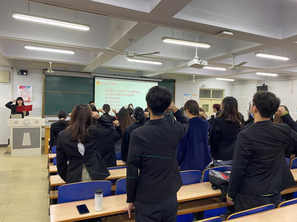 本次大会由best365手机版官方网站入团积极分子和老团员代表共同参加。在大会开始前,全体成员起立奏唱国歌,再由大会主持人马子清为大家播放中国共青团团史纪录片,让大家充分了解中国共青团的发展史以及代代传承的精神,接着全体同学起立共同重温入团誓词,牢记自己是一名共青团员。宣誓完毕,在全体成员重温团歌后,入团积极分子,老团员代表依次上台发言,本次动员大会圆满结束。