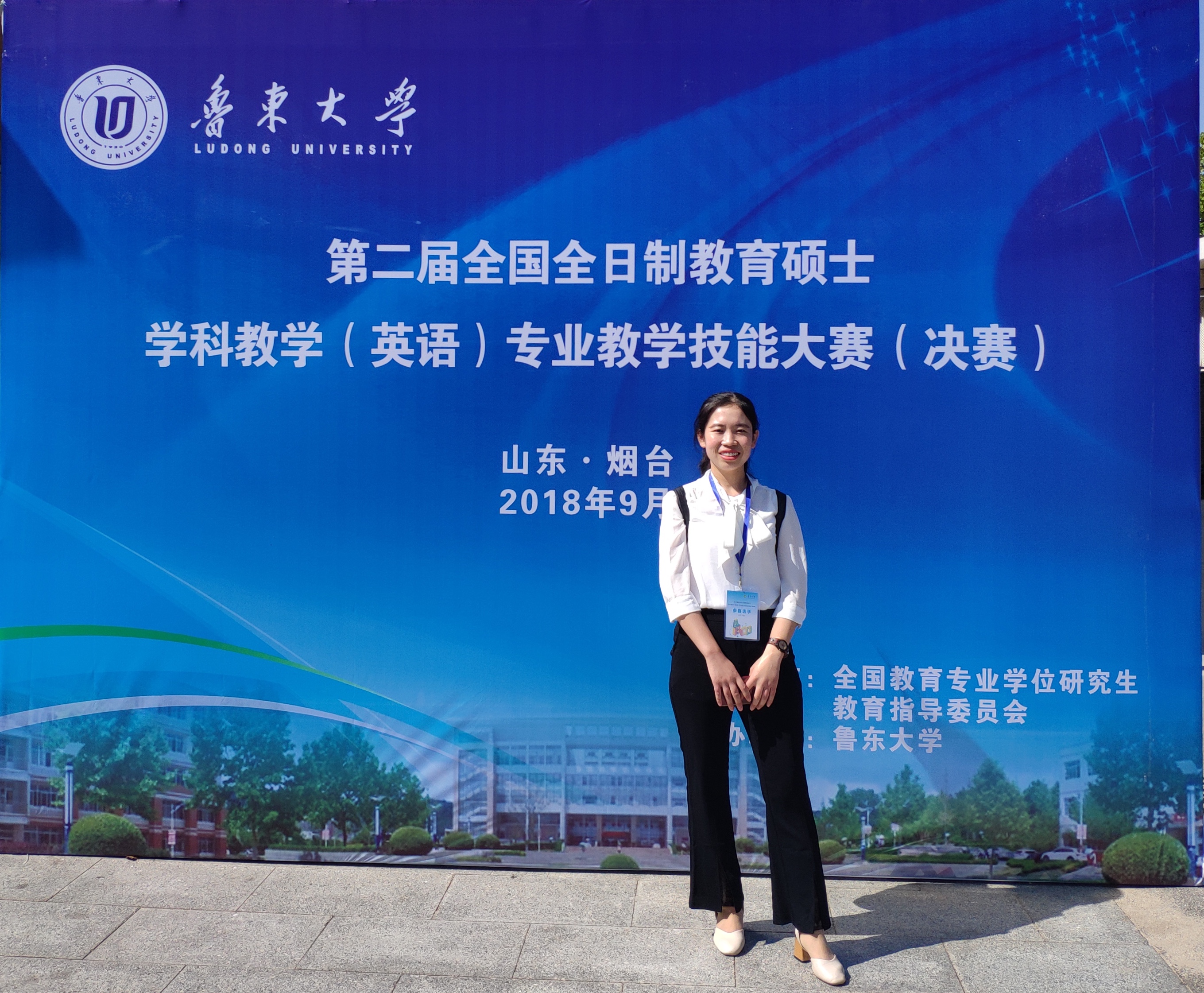 2018年9月21日至23日,第二届全国全日制教育硕士学科教学(英语)专业教学技能大赛(决赛)在鲁东大学拉开帷幕。best365官网best365手机版官方网站2017级学科教学(英语)专业研究生赵蔚蔚参加决赛,在模拟讲课和现场答辩两大环节中展示出了best365官网研究生良好的学科素质和精神风貌,并获得优秀教学设计奖。