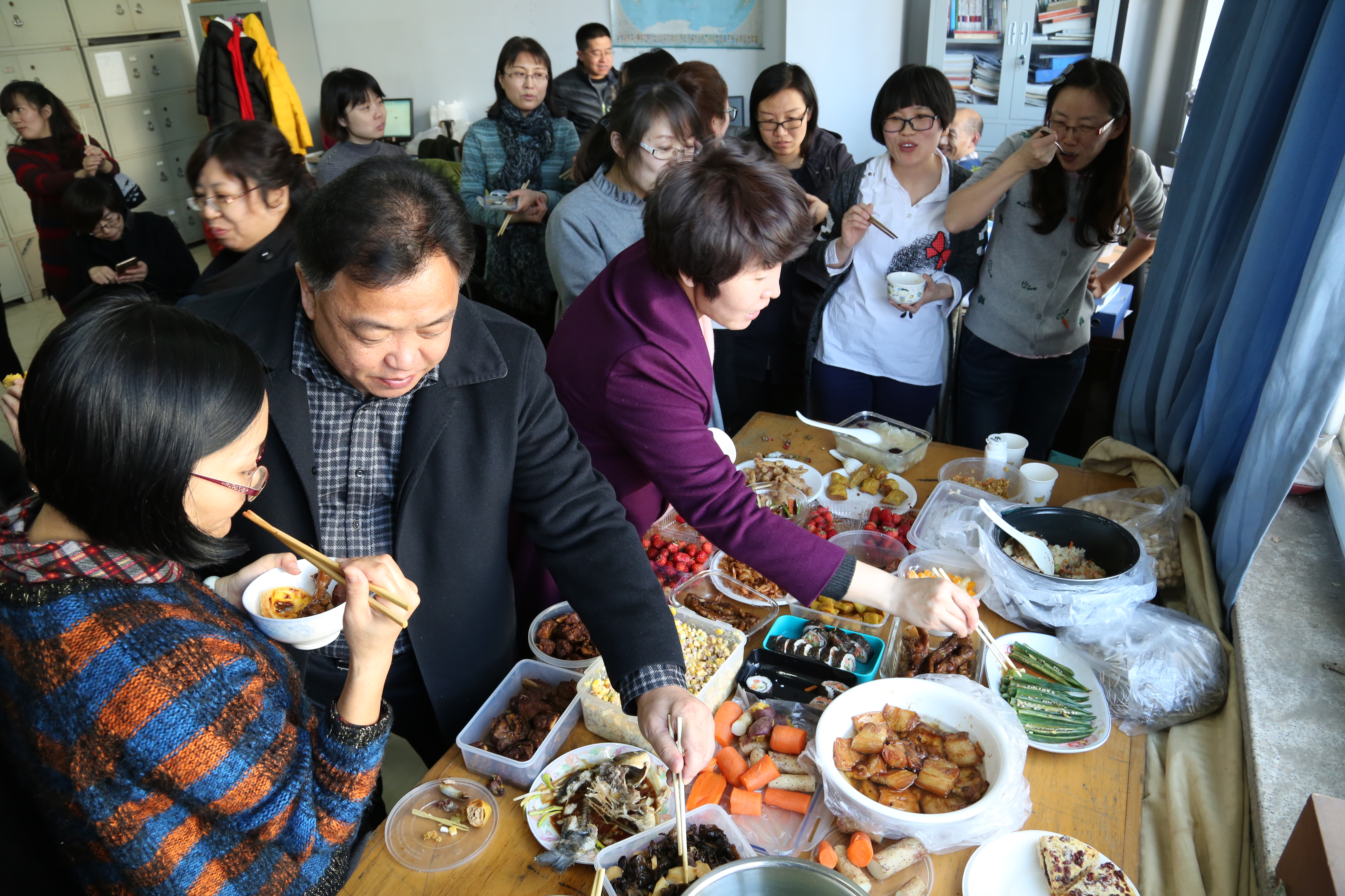 三尺讲台知性美,八尺厨房俏娇娘。本次活动以三八节为契机,以各教学部为单位,每人带来一道拿手菜,互相品尝,切磋厨艺。在轻松愉快的氛围里,品尝美食,交流感情,放松身心,使外院这个大家庭更加其乐融融。