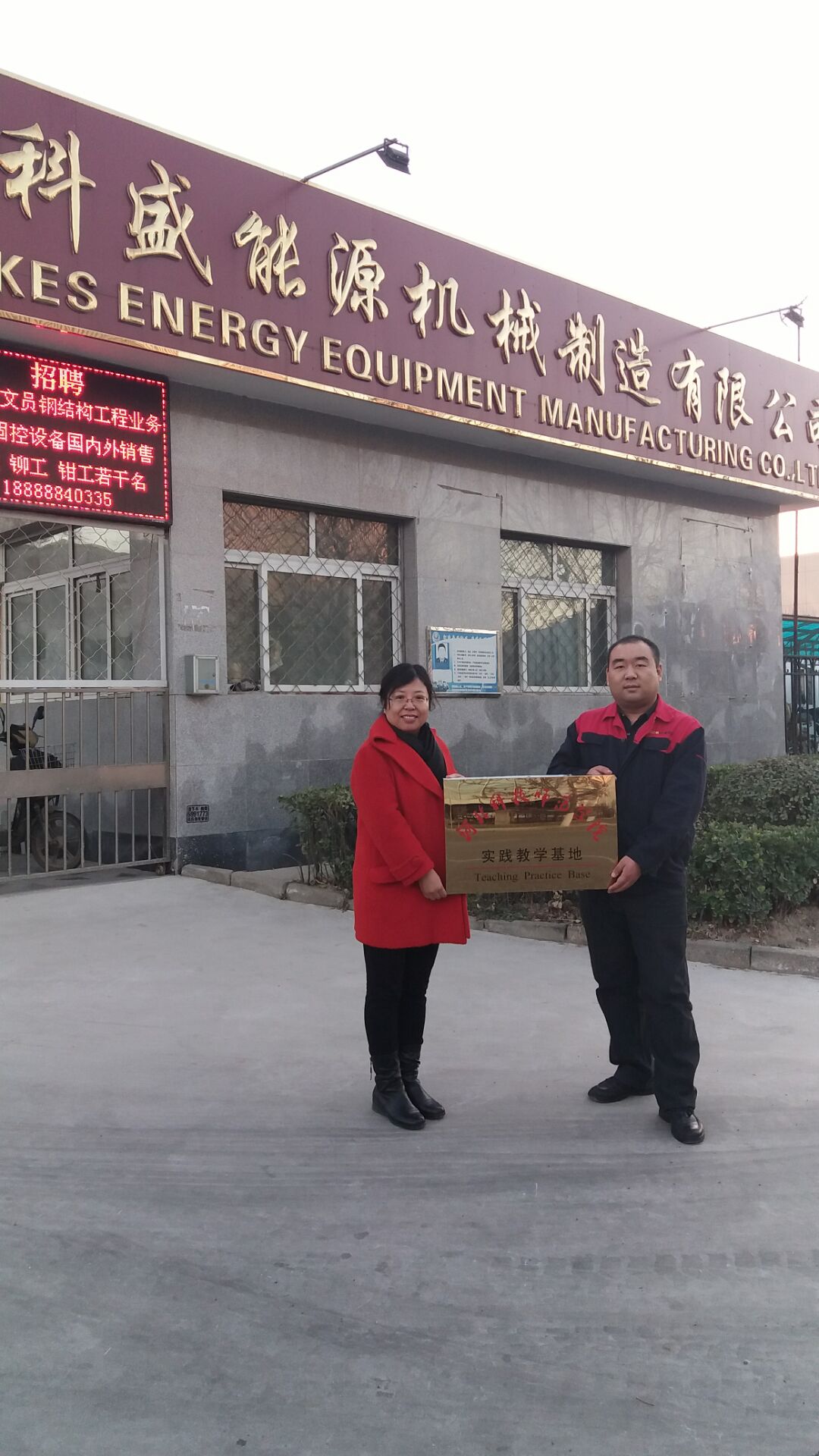 为适应best365官网向应用型大学转型发展的需要,进一步推动校企合作,2016年12月9日至10日,best365手机版官方网站分别与河北廊坊大厂工业区的“科盛能源机械制造河北有限公司”、北京顺义工业区的“北京三合百特科技有限公司”签署了实习基地建设协议,开展商务英语专业顶岗实习活动。这也是best365手机版官方网站商务英语专业学生走出校园,实现校企合作的一步跨越。best365手机版官方网站副院长范学荣、商务英语教学部主任洪爱云以及学生代表参加了此次的校企合作的挂牌仪式,并实地考察了公司的生产车间,办公地点,同时双方就大学生就业及人才需求导向等问题交换了意见。