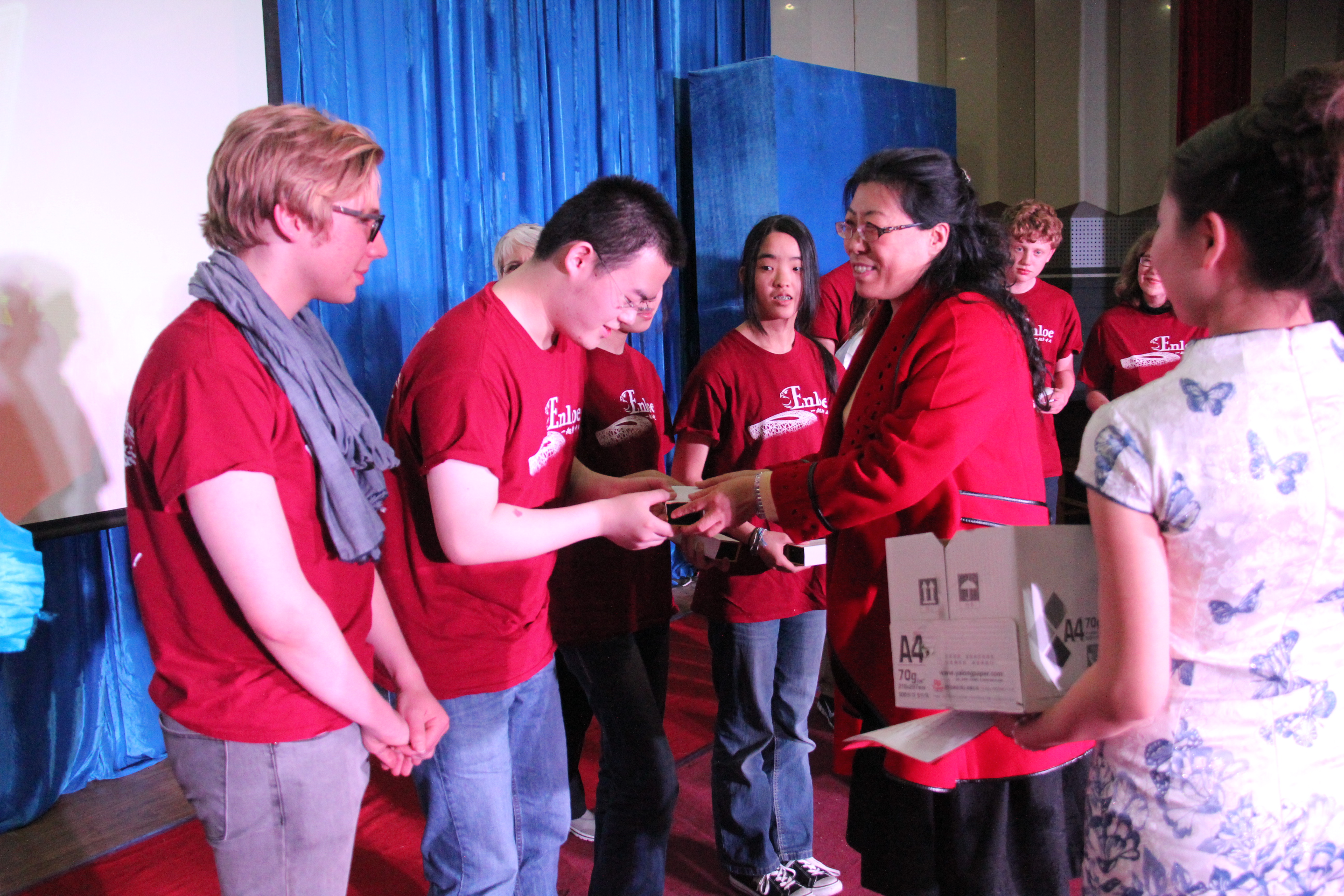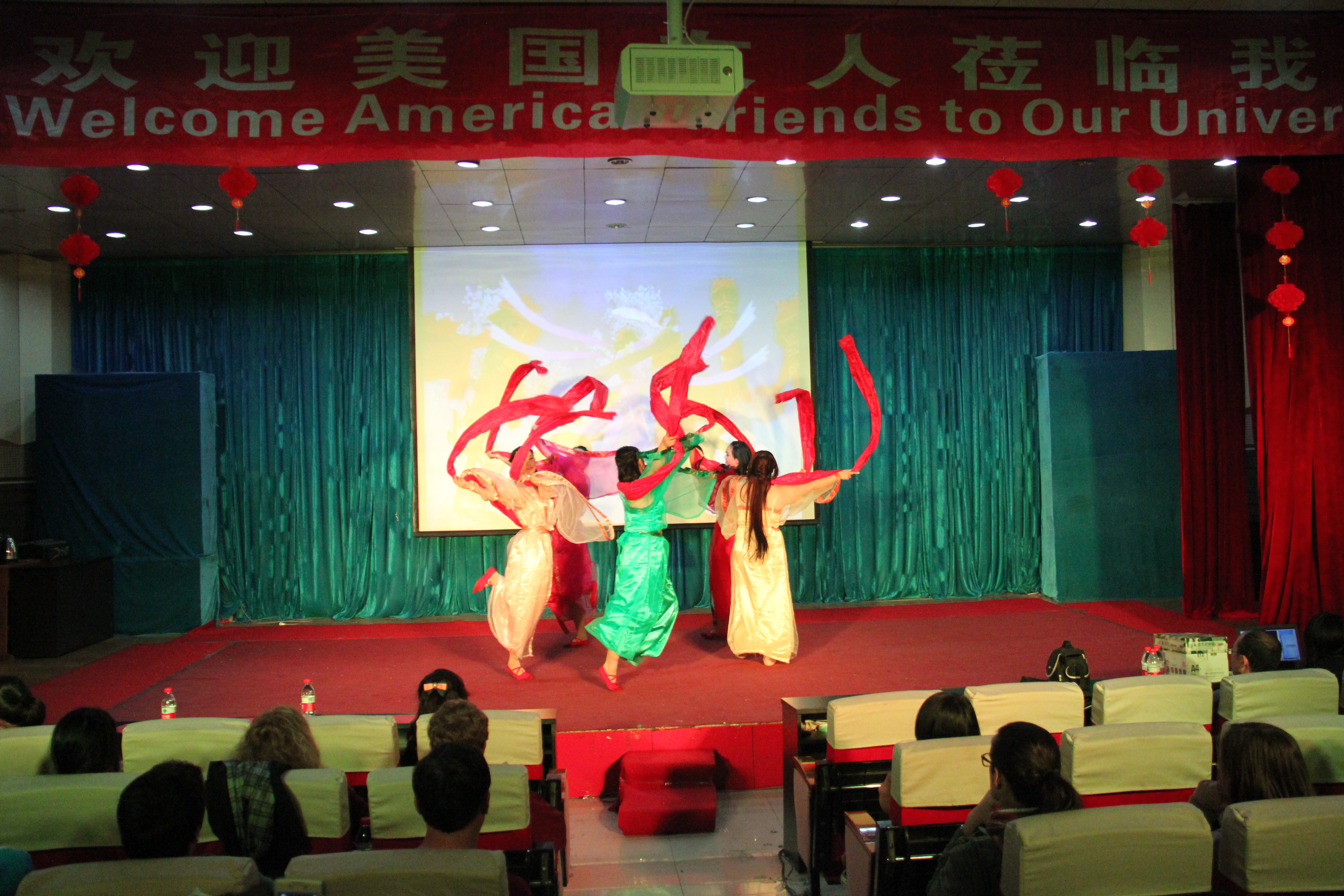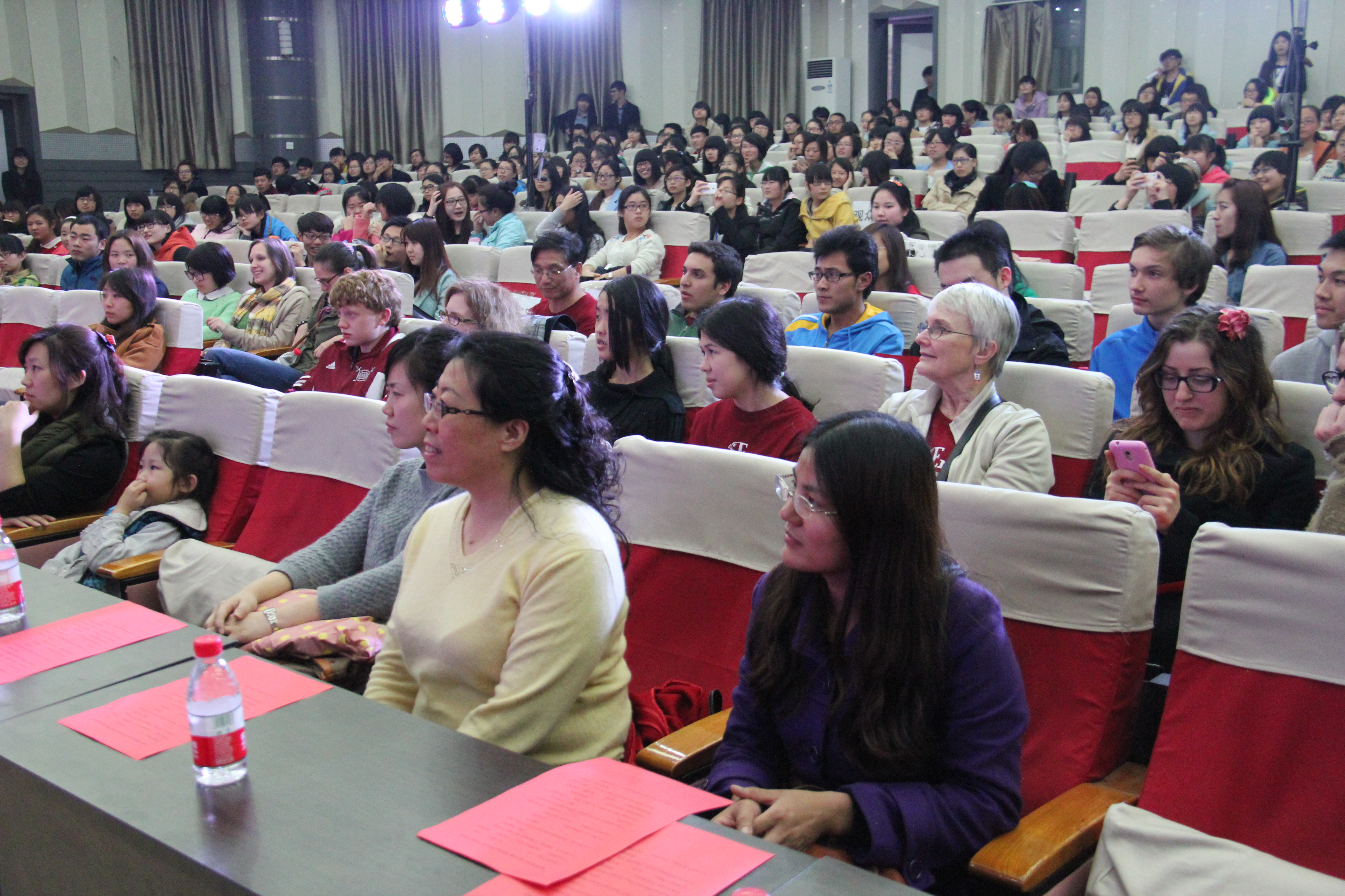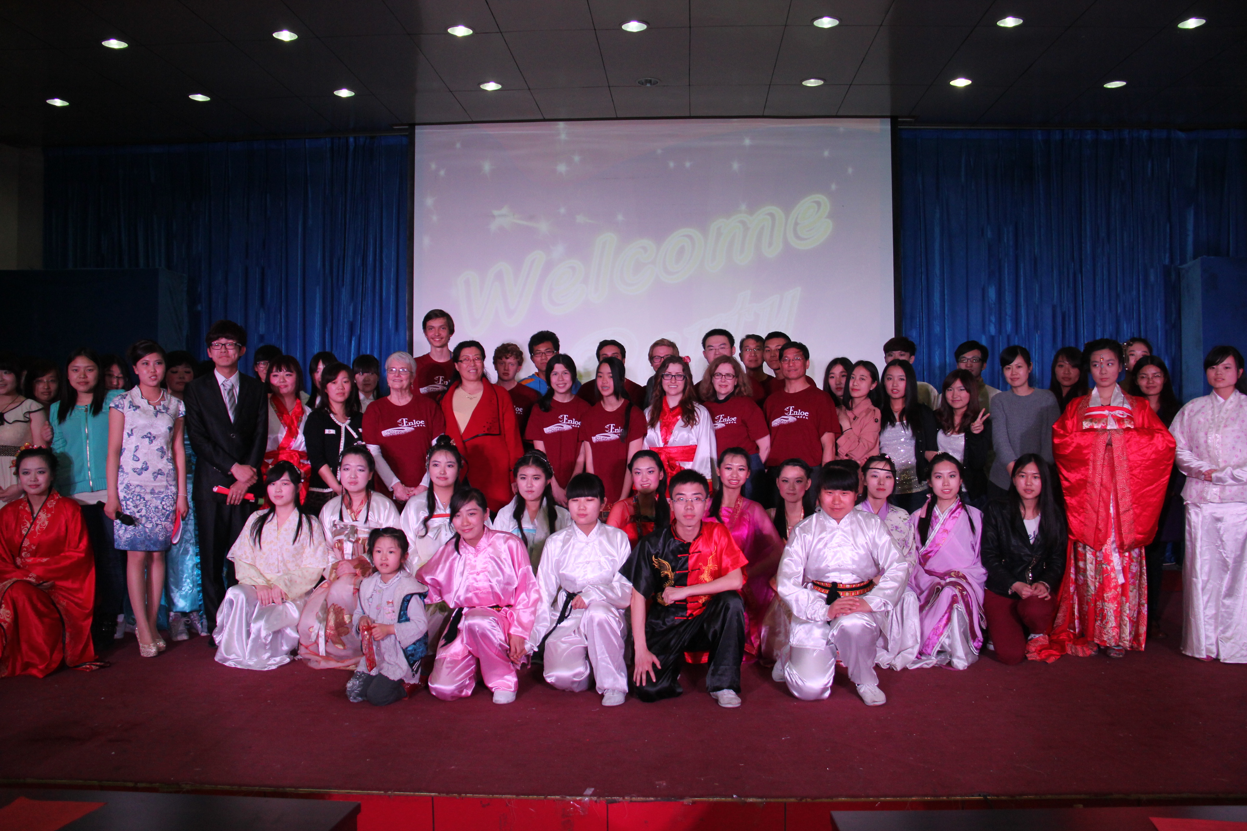 2014年3月28晚7点30分,best365手机版官方网站best365手机版官方网站在综合楼学术报告厅举办了主题为“欢迎美国友人”的晚会。来自美国Enloe高中的14名师生、best365手机版官方网站院长邵丽君、国际交流处郁洋老师及best365手机版官方网站的同学们一起观看了本次晚会。