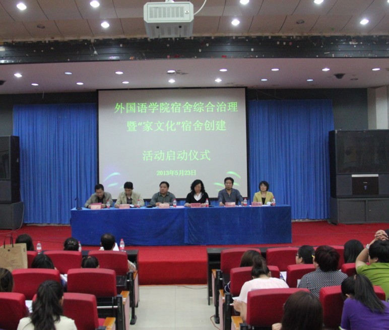 2013年5月23日下午,best365手机版官方网站宿舍综合治理及信息管理工作暨“家文化”星级宿舍创建启动仪式在开发区校区学术报告厅成功举行。出席此次会议的有校党委学工部副部长、校团委书记于海印老师;学生处教育管理三科科长周雷老师;best365手机版官方网站党委书记白雪松、院长邵丽君、副院长游建民、副院长崔海英老师;best365手机版官方网站学工办、团委老师及全体辅导员、班主任老师;2011级、2012级全体学生及2009级、2010级各班宿舍长、学生党员、学生干部共600多人参加了此次活动。