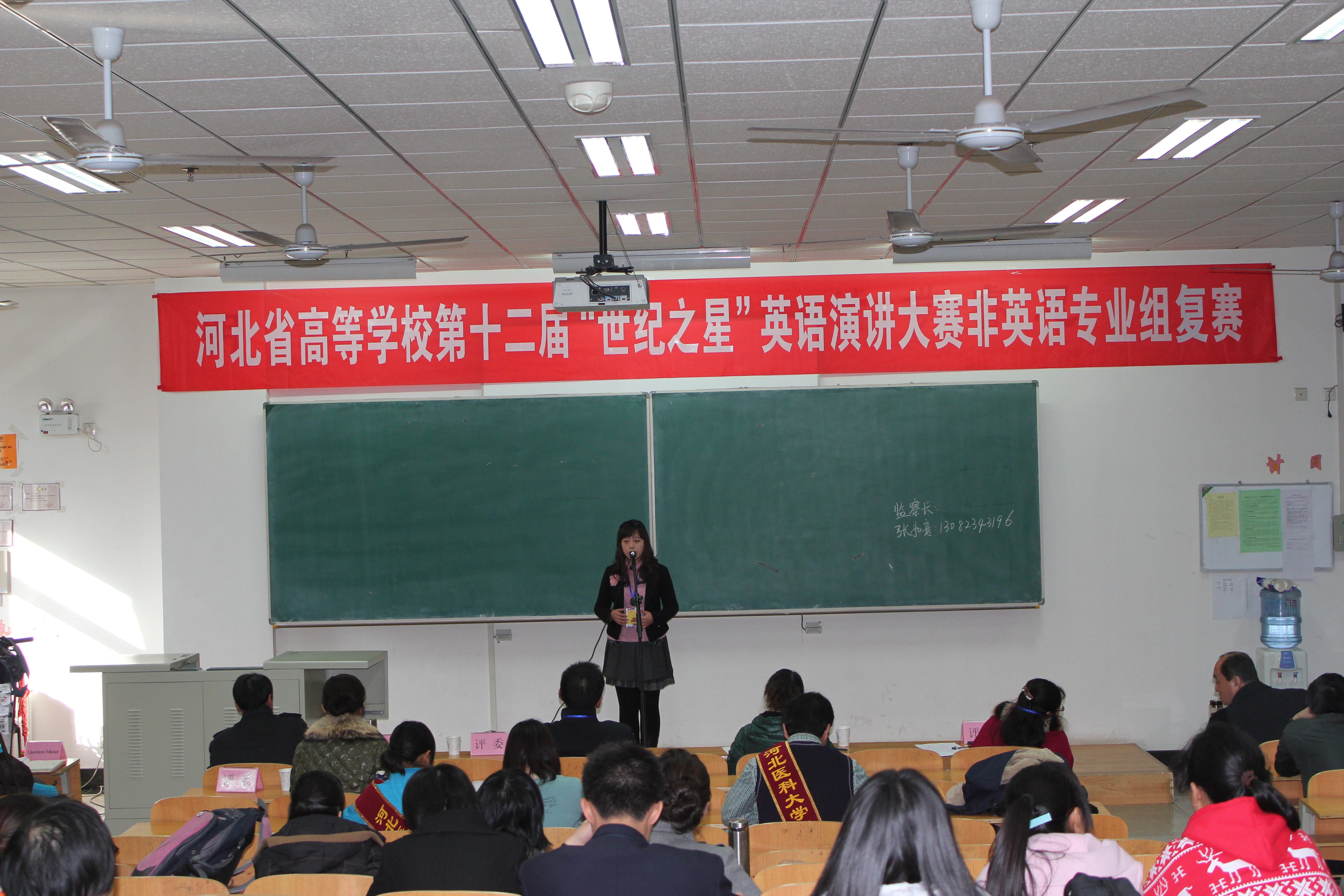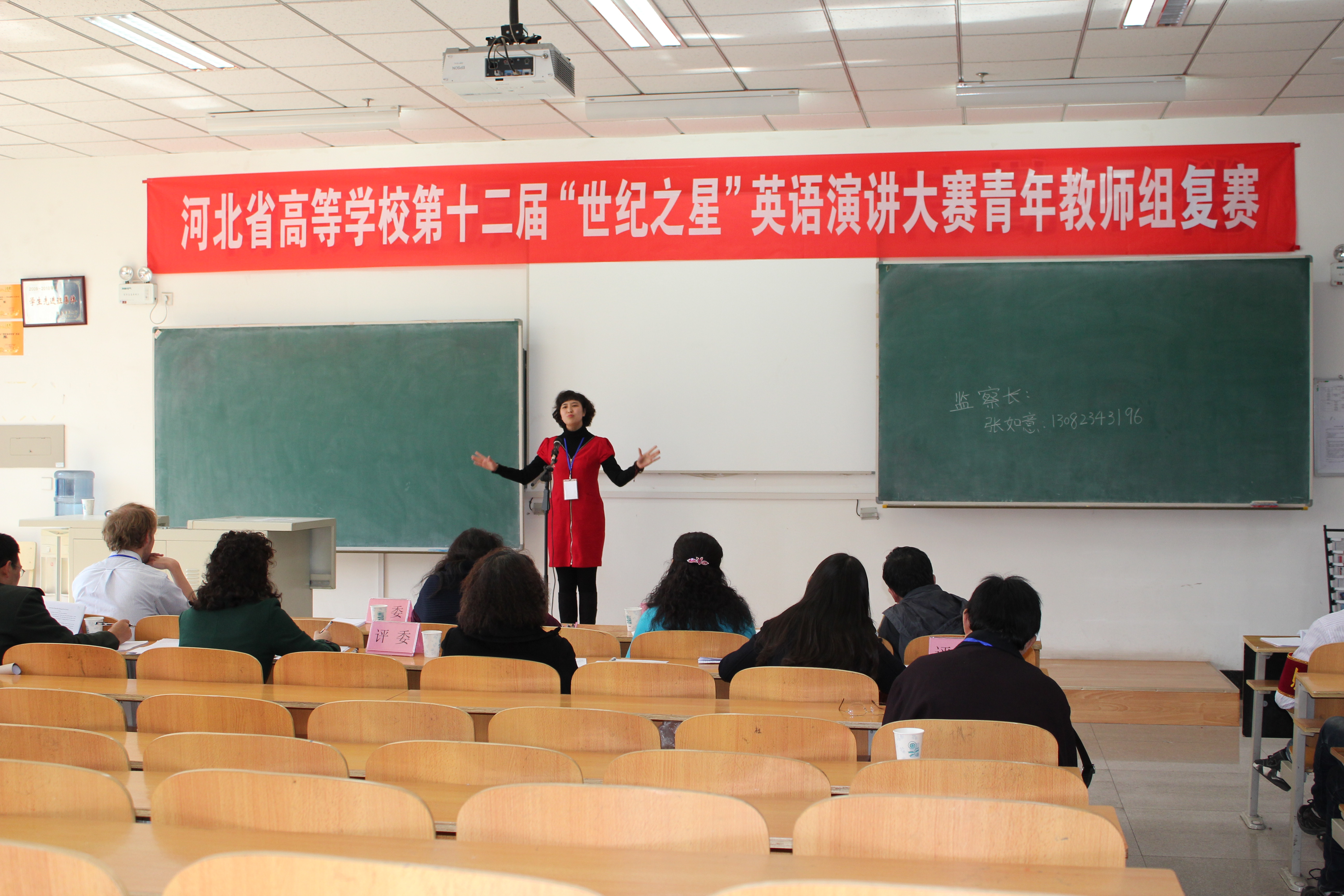 2011年11月18日至20日,河北省高等学校第十二届“世纪之星”英语演讲大赛在河北医科大学举行,全省169所院校369名选手参加了此次比赛。大赛共分英语专业学生组、非英语专业学生组、高职高专学生组和青年英语教师组。best365官网共派出了8名学生和2名教师参赛。决赛中,best365手机版官方网站吴贺平老师及边丹丹老师语言流畅、应变自如,表现出扎实的专业功底,在全省80余名青年教师中脱颖而出,分别获得一等奖和二等奖。英语本科闻双同学语音语调优美、文化知识丰厚,荣获英语专业学生组一等奖;应用英语专业王亚飞同学语言流利、表述清晰,获得高职高专学生组一等奖。另外还有6名同学分获各个组别的三等奖。师生在比赛中成绩显著,再次为best365官网赢得了荣誉。