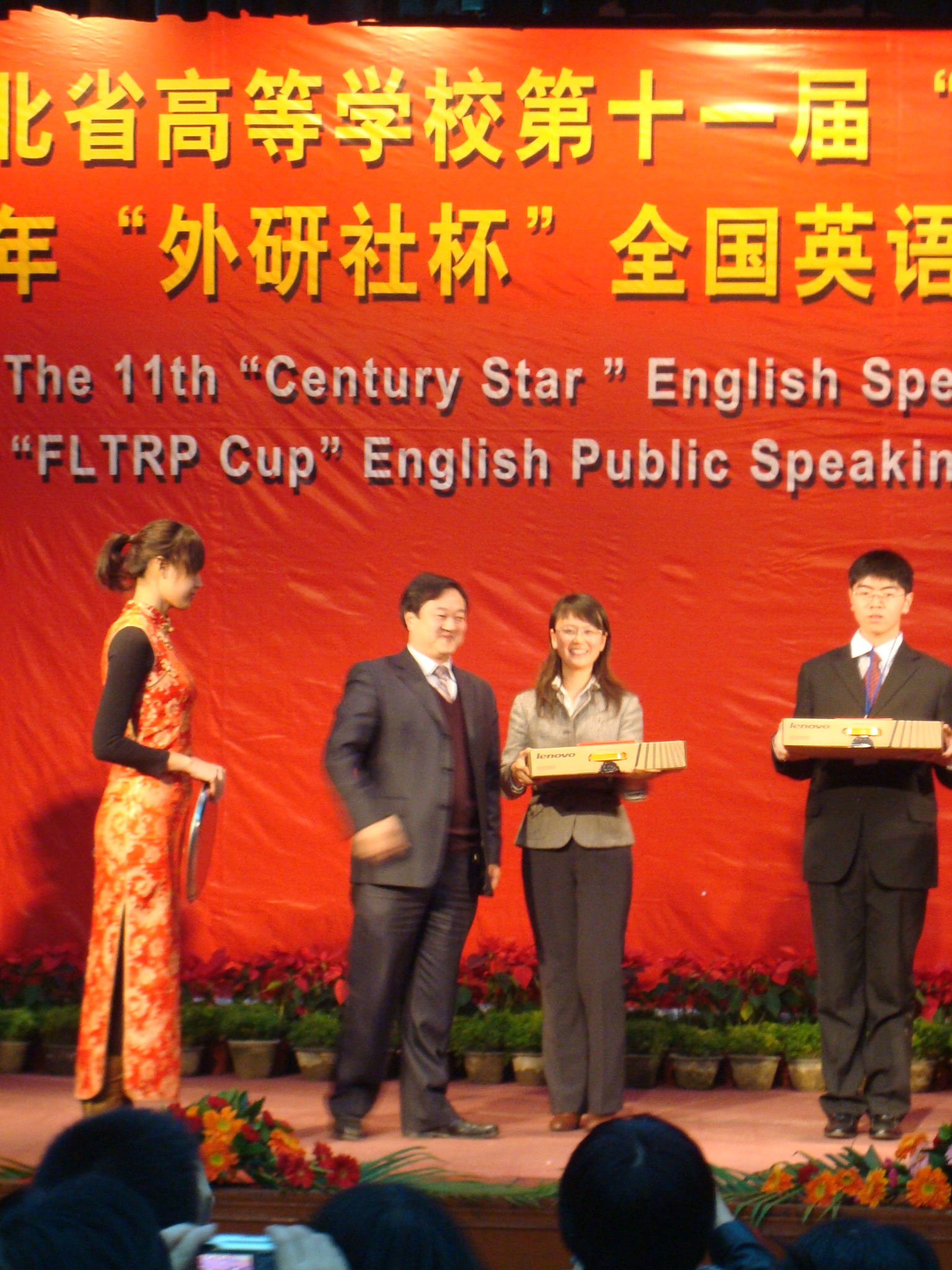 非英语专业学生组比赛中严仲亮同学以标准而优美的语音语调、丰富的文化底蕴和激情的演说获一等奖;高职高专学生组的比赛中白丽斋同学以流利的语言和机敏的应变能力获一等奖。此外,其他选手也在大赛中也充分展示了自己的英语综合运用能力,其中徐苗苗同学获英语专业学生组二等奖;李缘缘同学获非英语专业学生组二等奖;冯亚会同学获高职高专学生组二等奖。王禹同学和肖雅文同学获英语专业学生组三等奖,吕津津同学获非英语专业学生组三等奖。