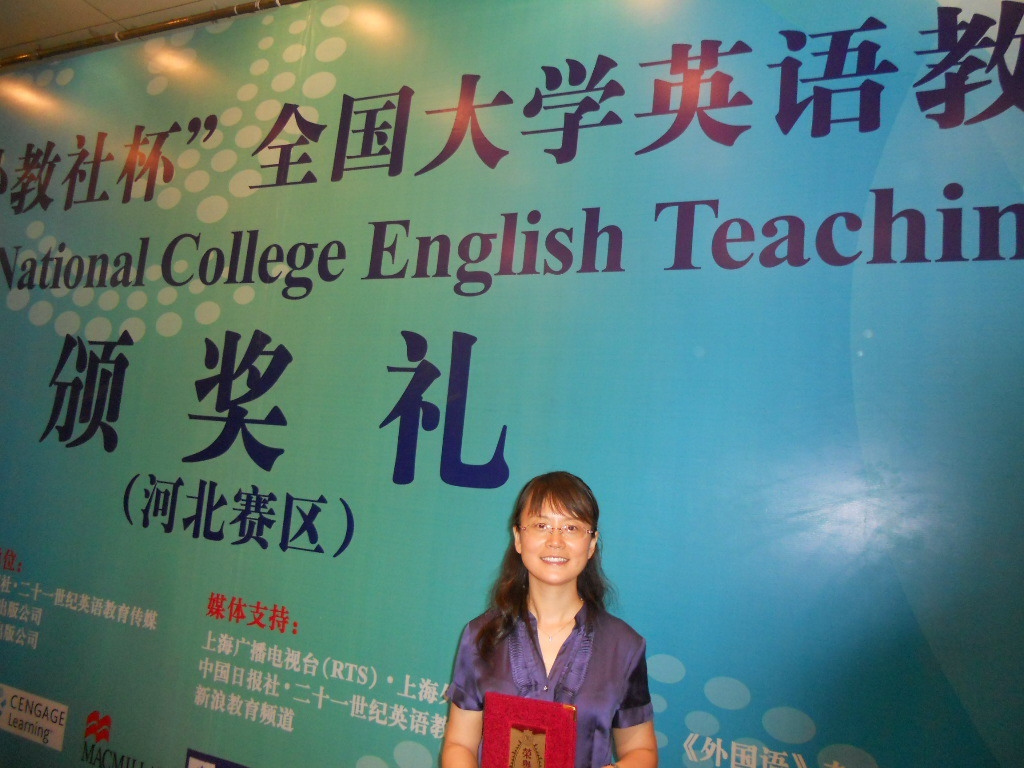 2010年5月27日-28日,首届“外教社杯”全国大学英语教学大赛河北赛区比赛在河北师范大学举行。best365官网best365手机版官方网站教师孙秋月充分展现了其清晰的教学思路、扎实的教学基本功、清晰流利的英语表达、以及良好的教态,赢得了在场专家和老师的一致好评,荣获河北省第二名的好成绩,并应邀去廊坊师范学院讲公开课。