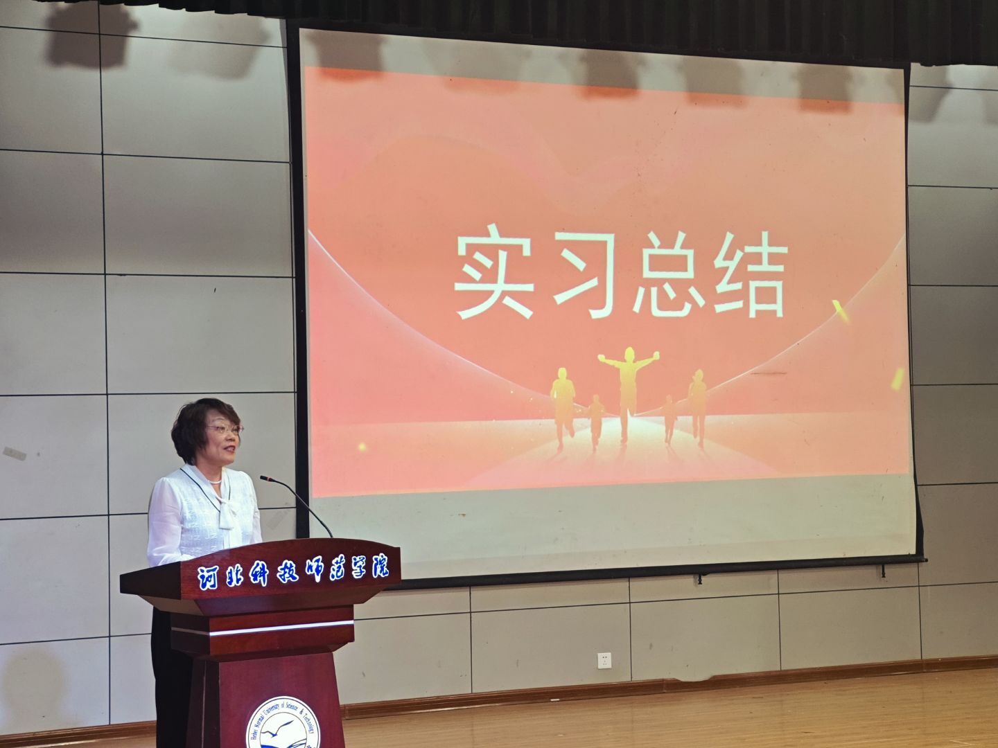 之后,陆鸣副书记围绕就业形势与职业发展作了动员讲话,鼓励同学们提前规划、积极准备,将实习经验转化为就业竞争力。最后,崔海英院长在总结讲话中充分肯定了本次实习工作的成效,希望同学们继续夯实专业基础,提升教学能力,为将来走上教育岗位奠定坚实基础。