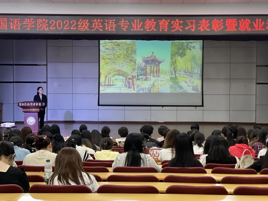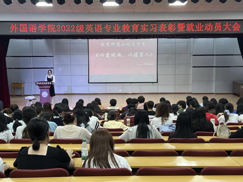 2025年9月25日,best365手机版官方网站英语专业教育实习表彰暨就业动员大会在多功能厅圆满召开,该专业2022级全体同学以及部分2023级学生参加了大会。此次大会全面回顾了上个学期的教育实习成果,表彰了在实习期间表现优异的同学,为师生提供了分享经验、交流心得的平台,并对大家今后的就业指明了方向,进一步推动了师范生培养质量的提升。